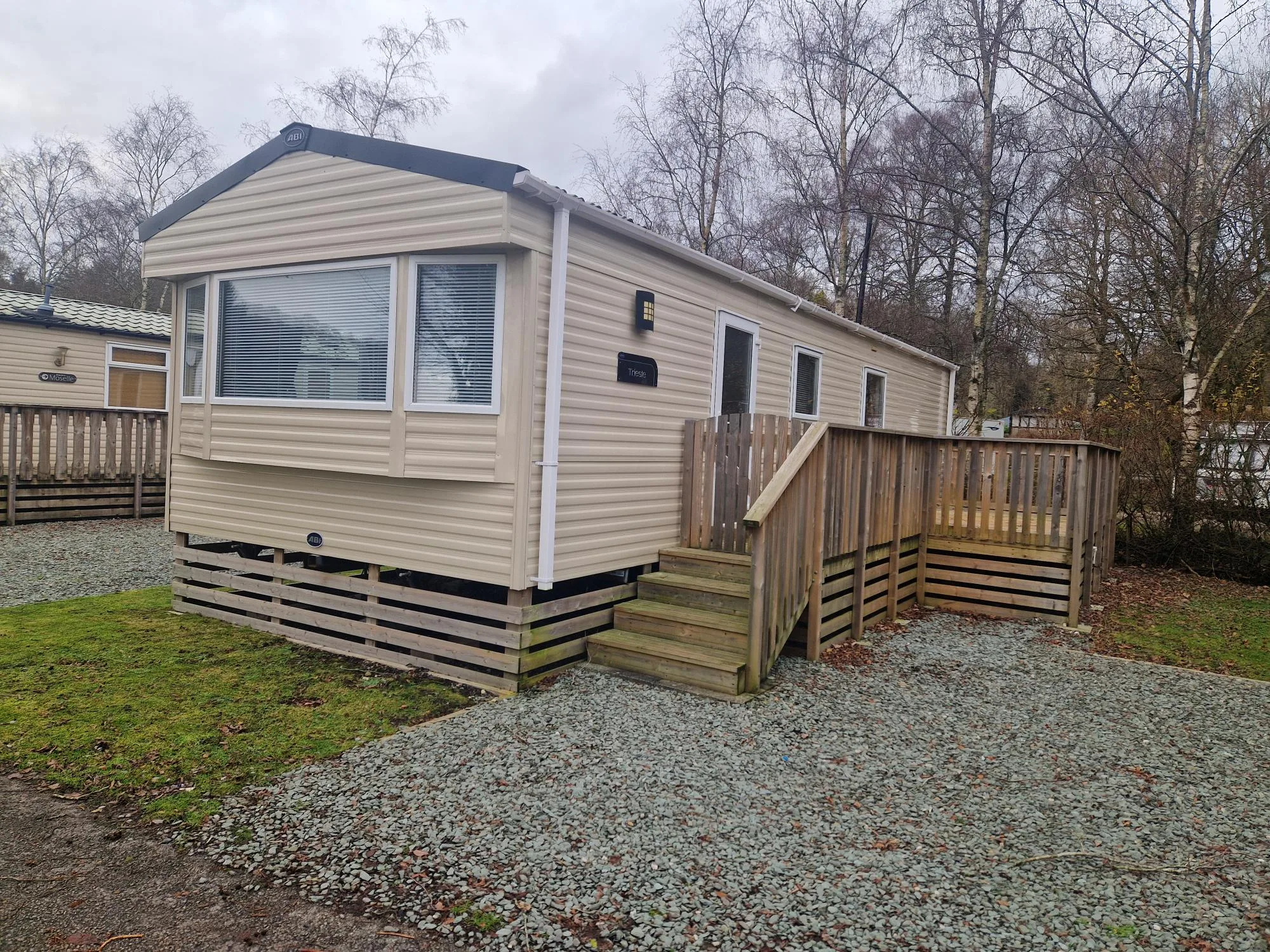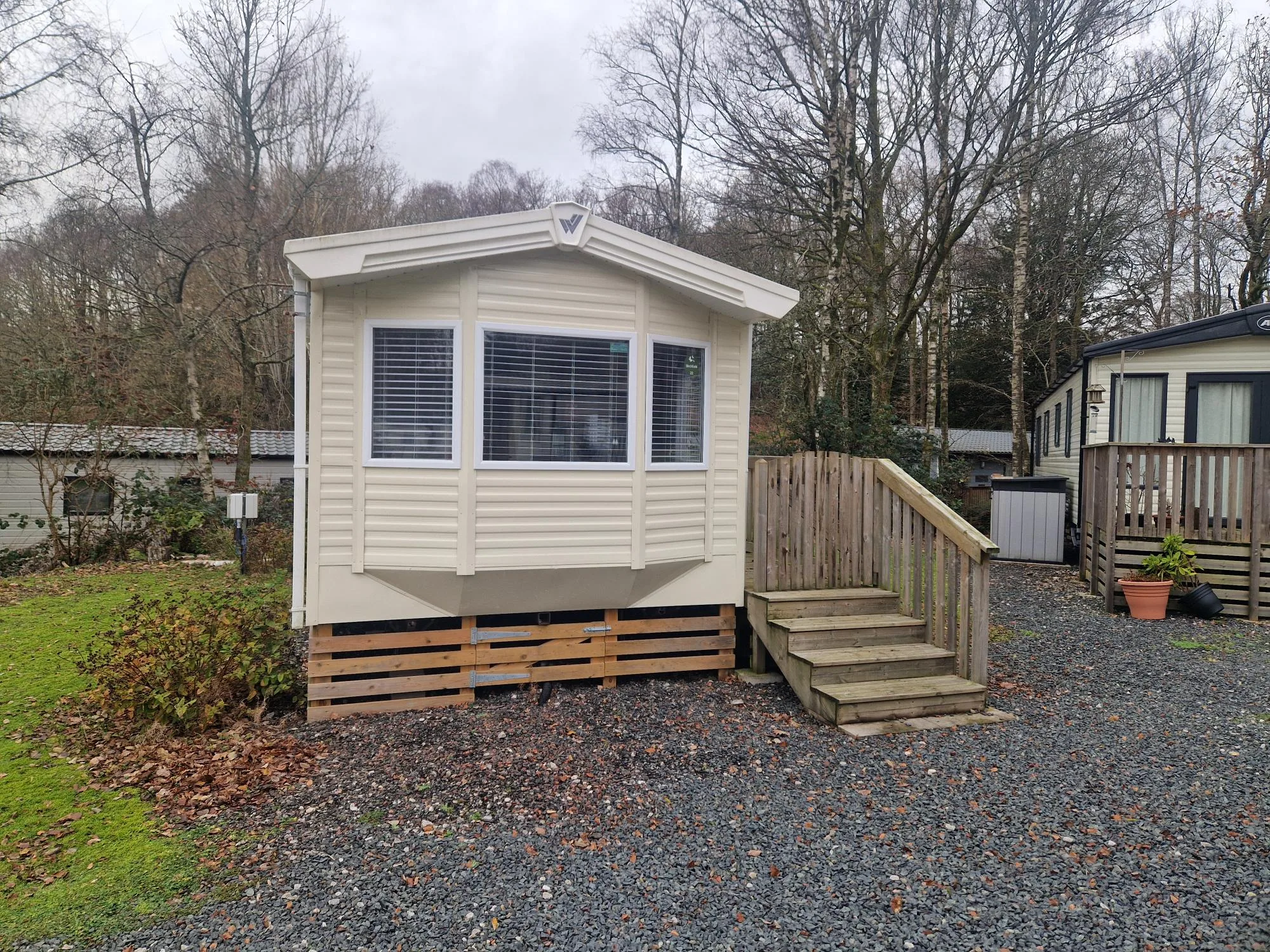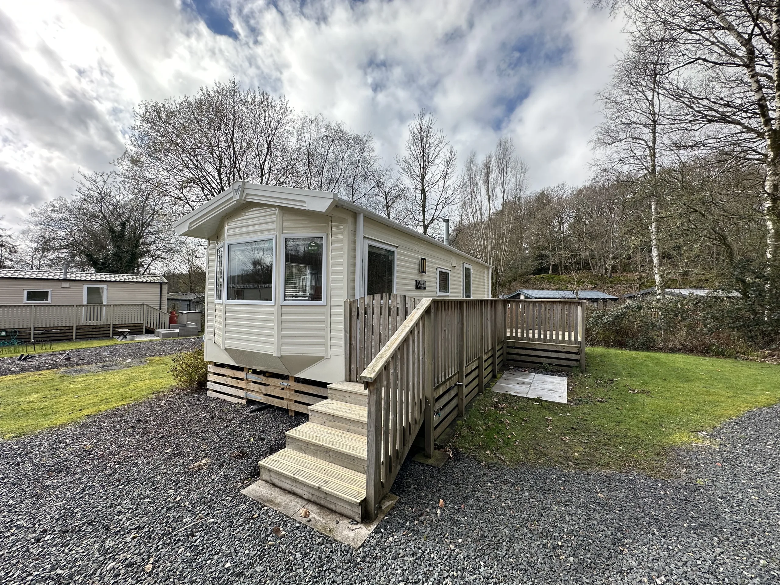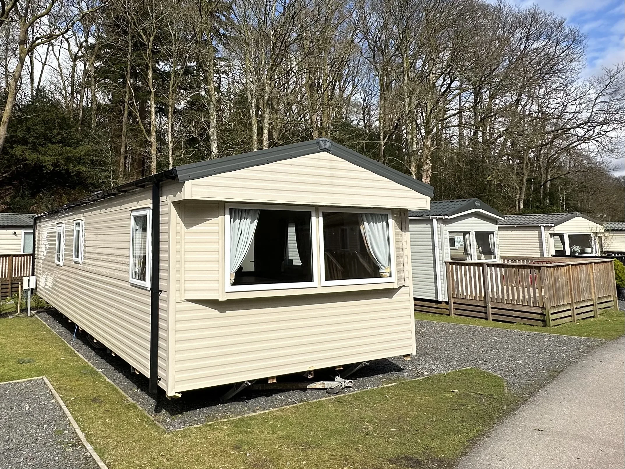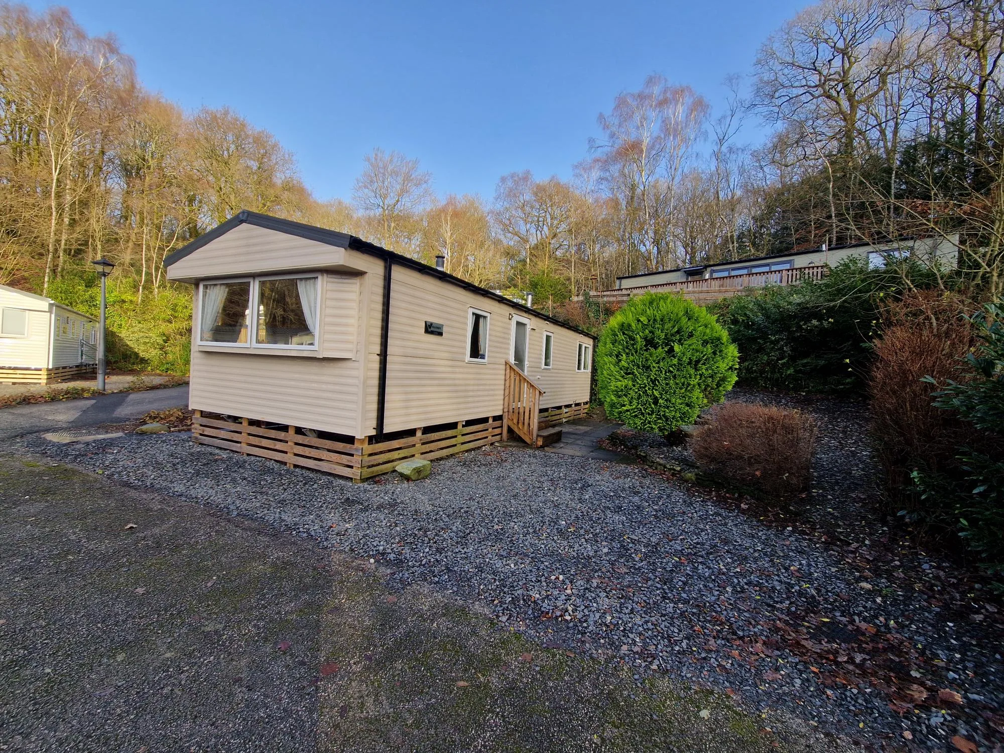 The park offers a range of static caravans and lodges for buyers seeking ownership in a peaceful woodland setting.