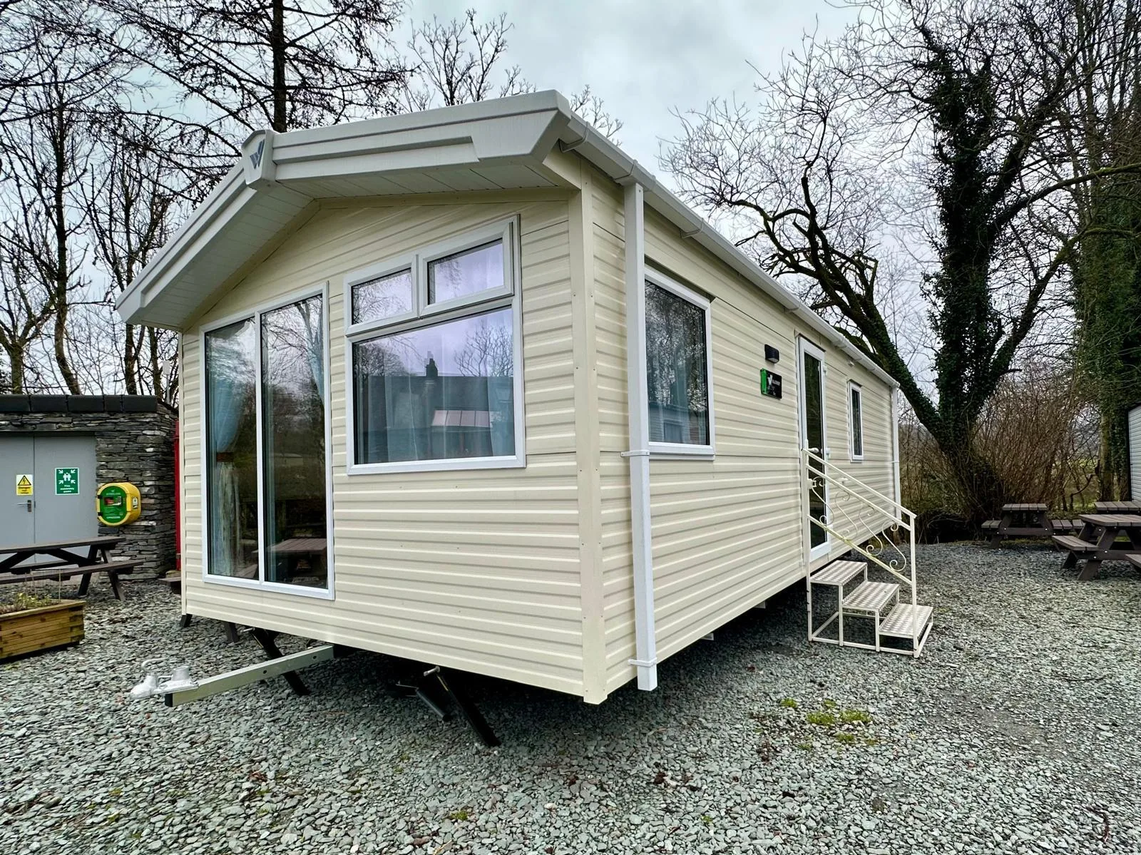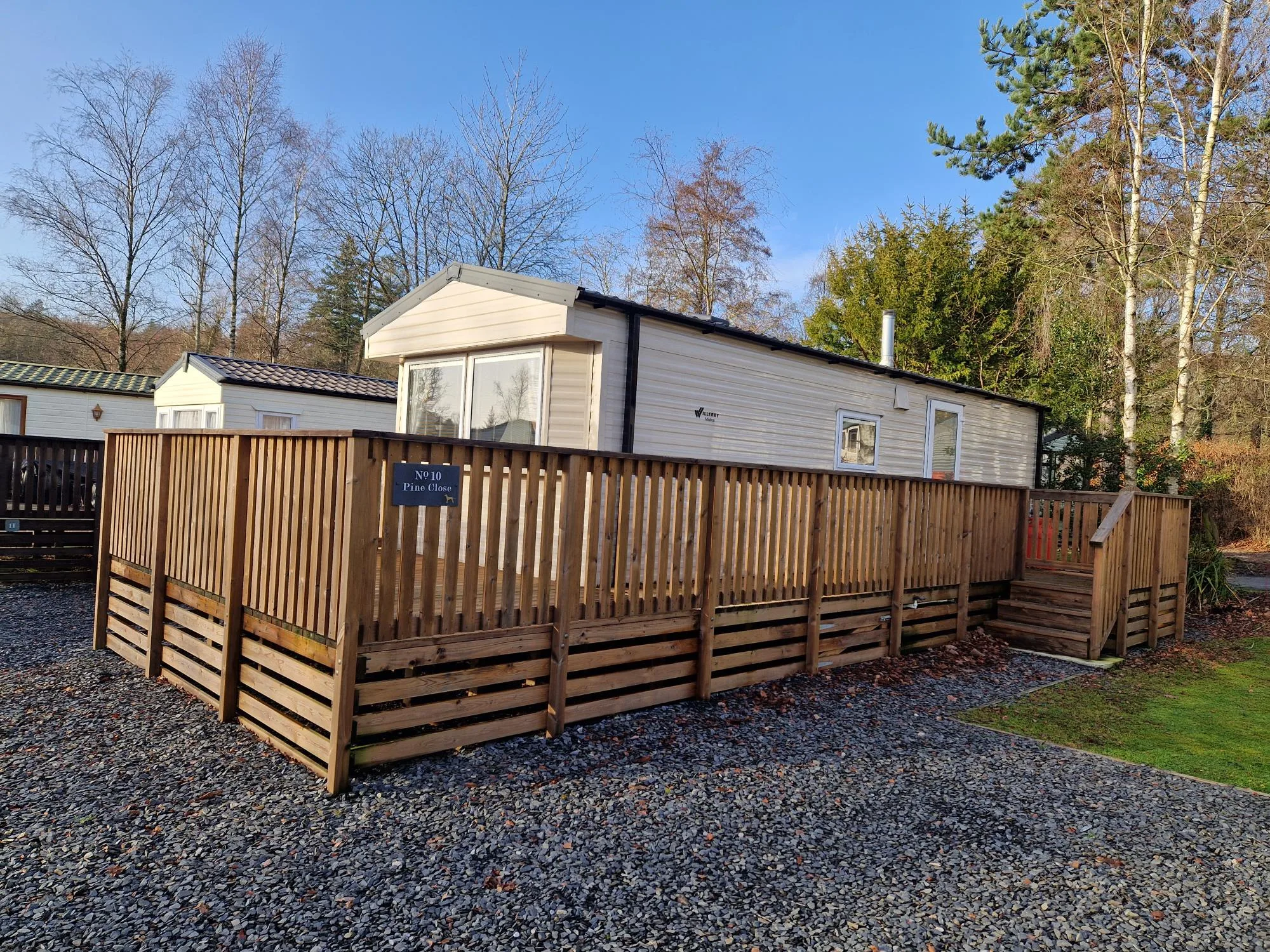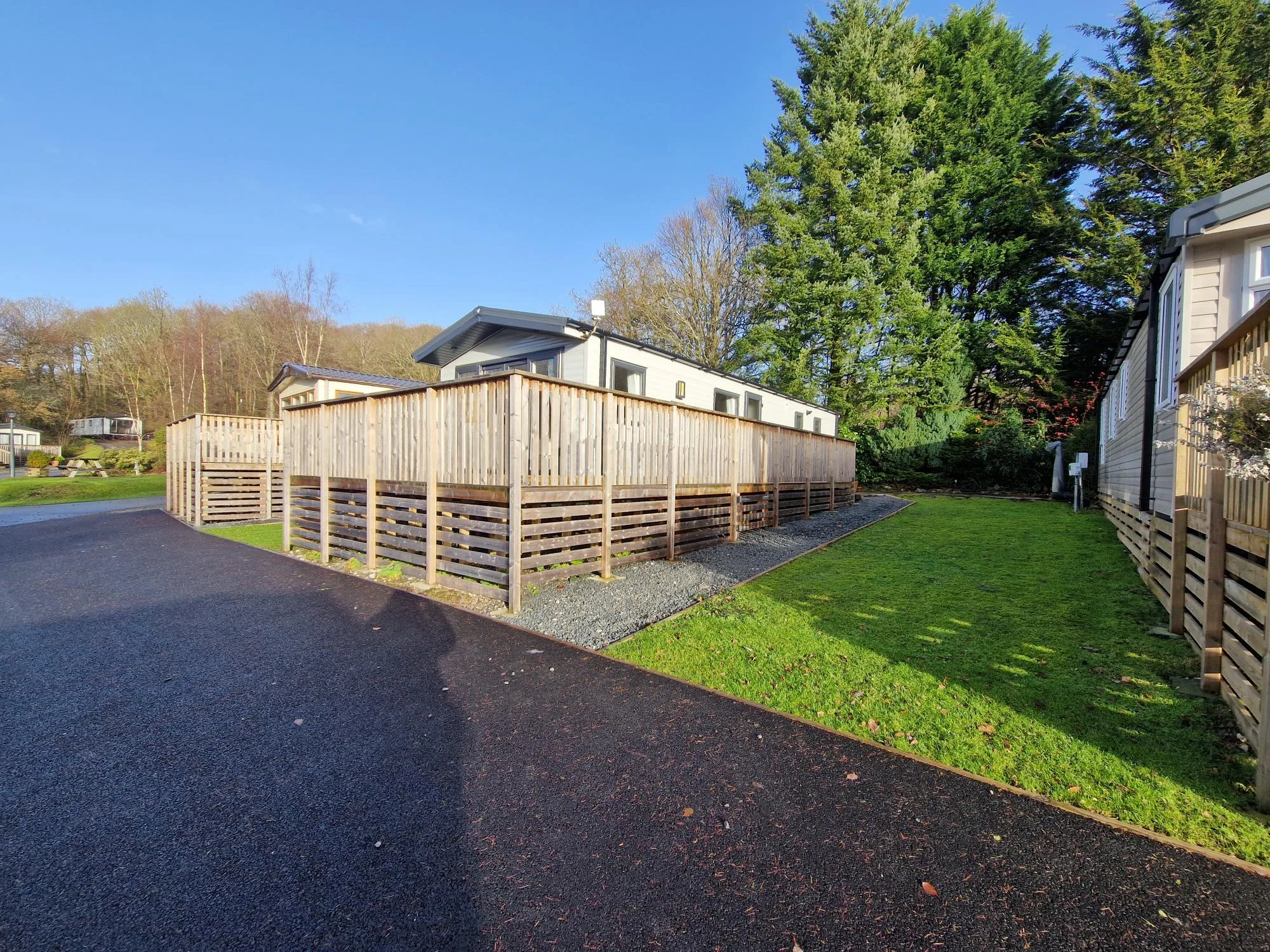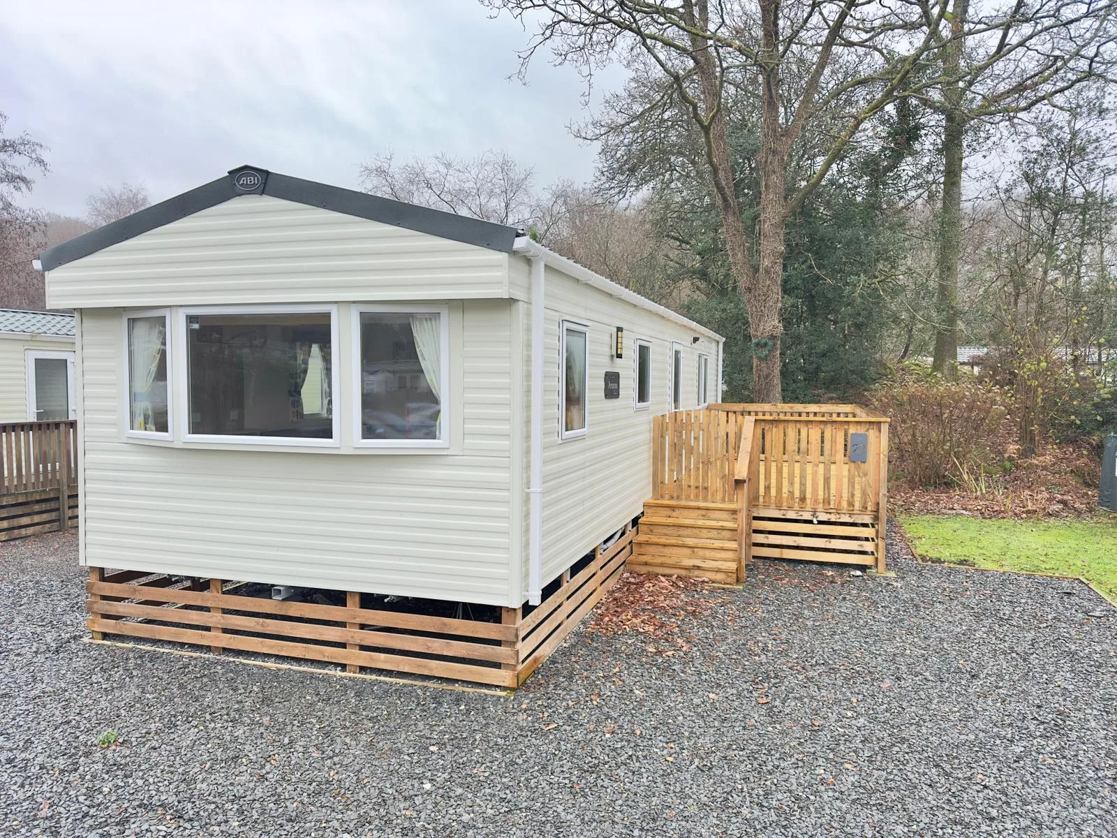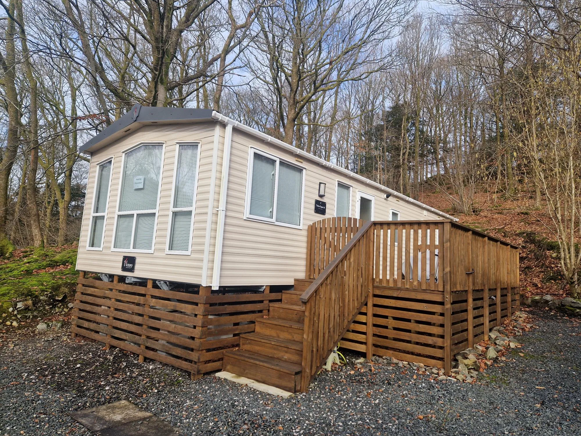 The park offers a range of static caravans and lodges for buyers seeking ownership in a peaceful woodland setting.