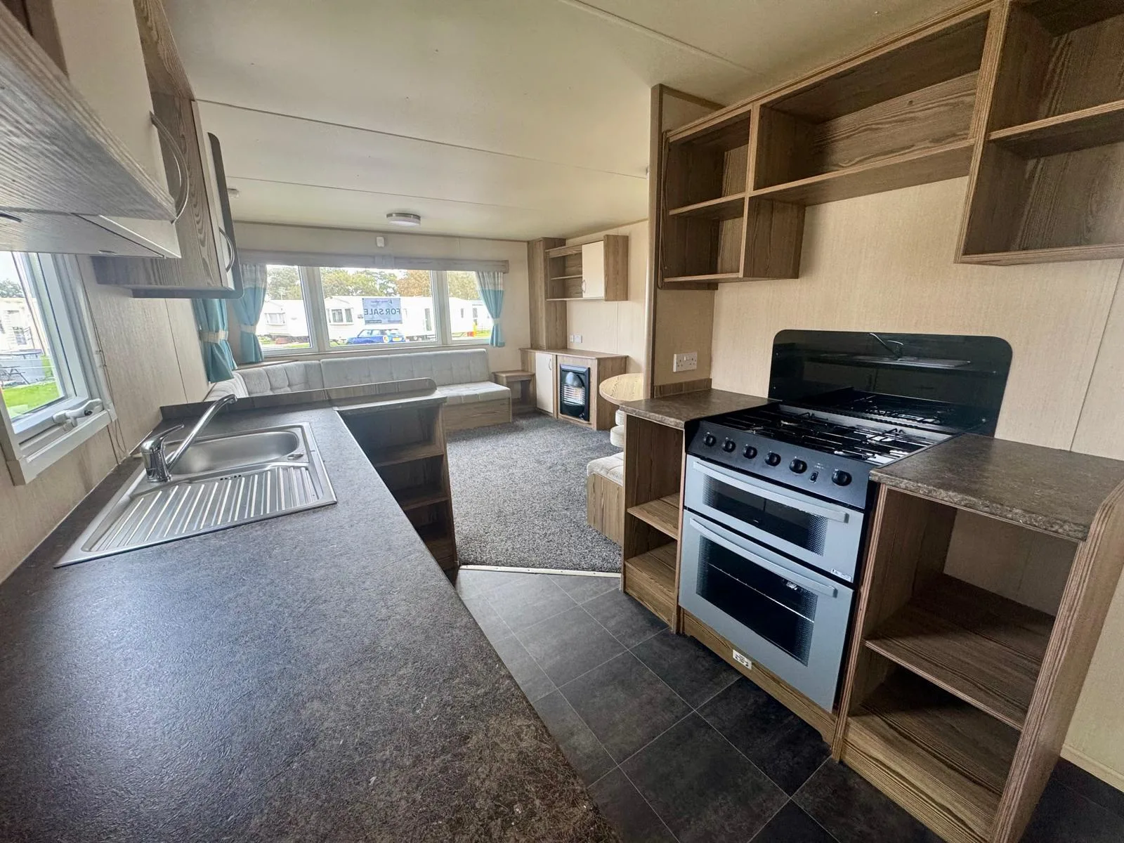The ABI Horizon is a stylish and practical starter holiday home, offering a bright, open-plan living space with wraparound seating, a contemporary electric fire and a fully equipped galley kitchen with ample storage and worktop space. The dining area is perfect for family meals. Finance available subject to status.