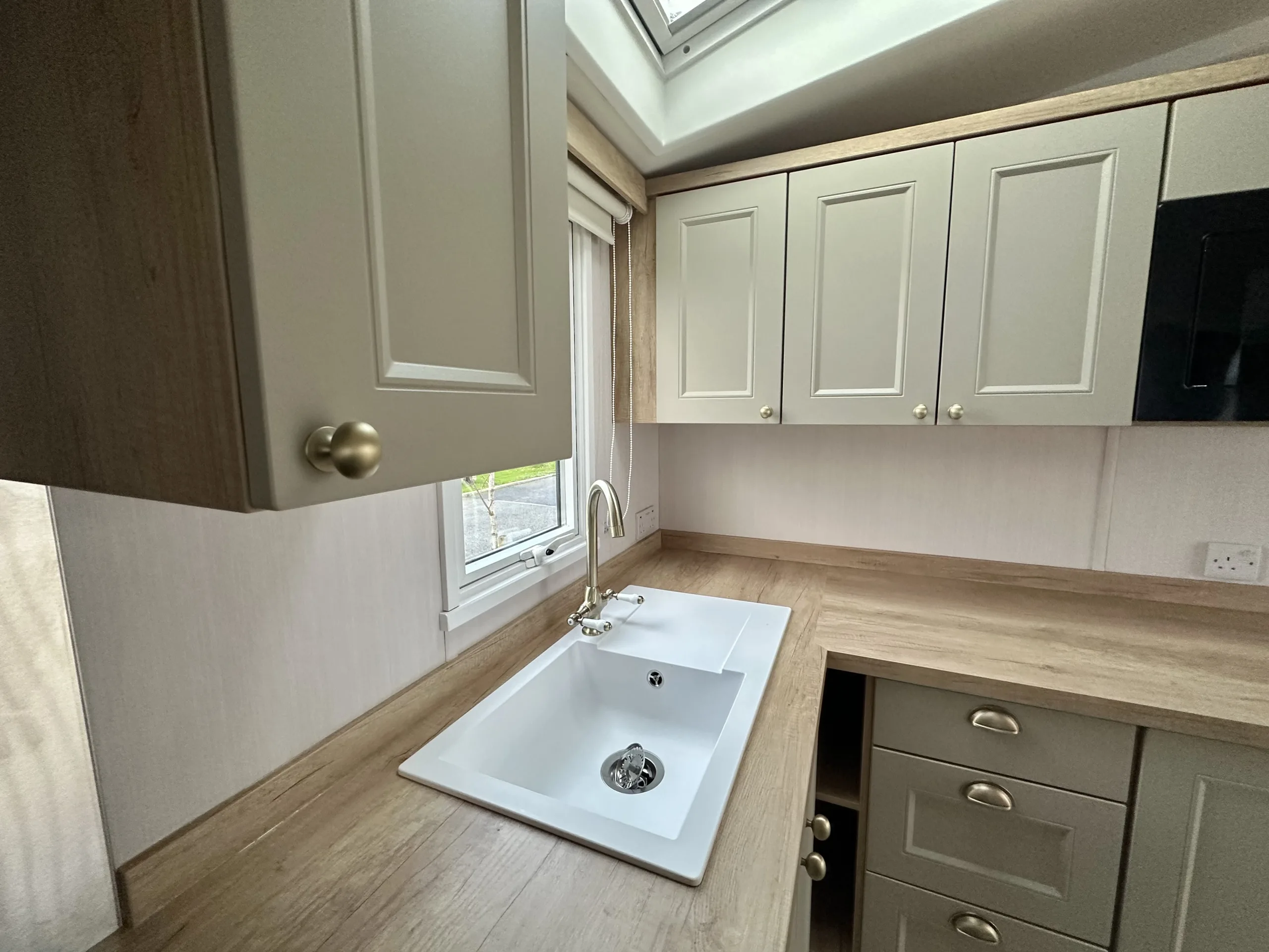 The spacious master bedroom offers a peaceful sanctuary, while the cosy second bedroom is perfect for family and guests. The open-plan kitchen is equipped with integrated appliances, and the stylish living area provides an inviting space for both entertaining and unwinding.