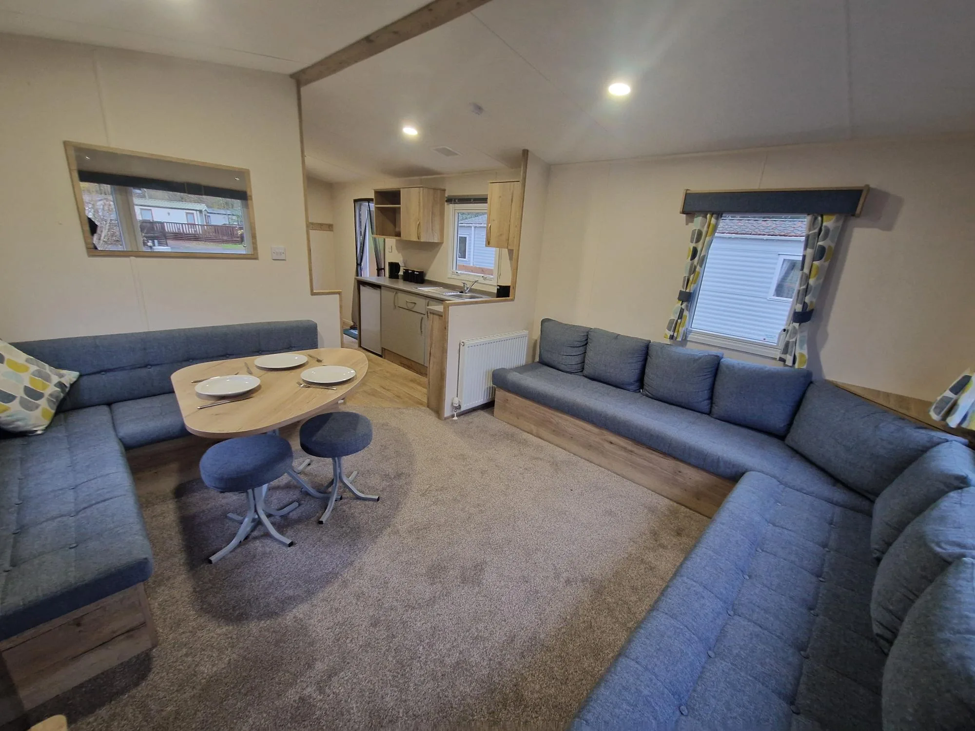• Contemporary Living Area – Open-plan lounge and dining space with modern furnishings and a bright, airy feel.
