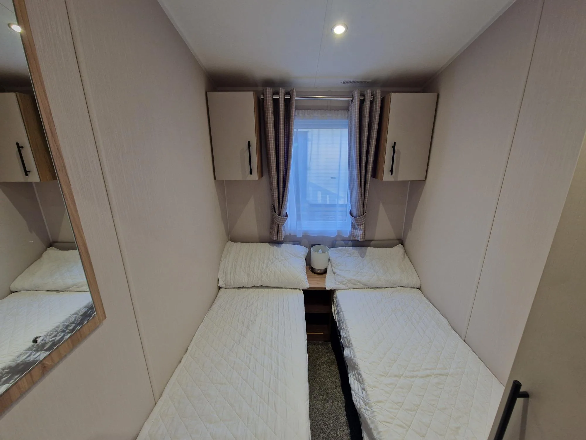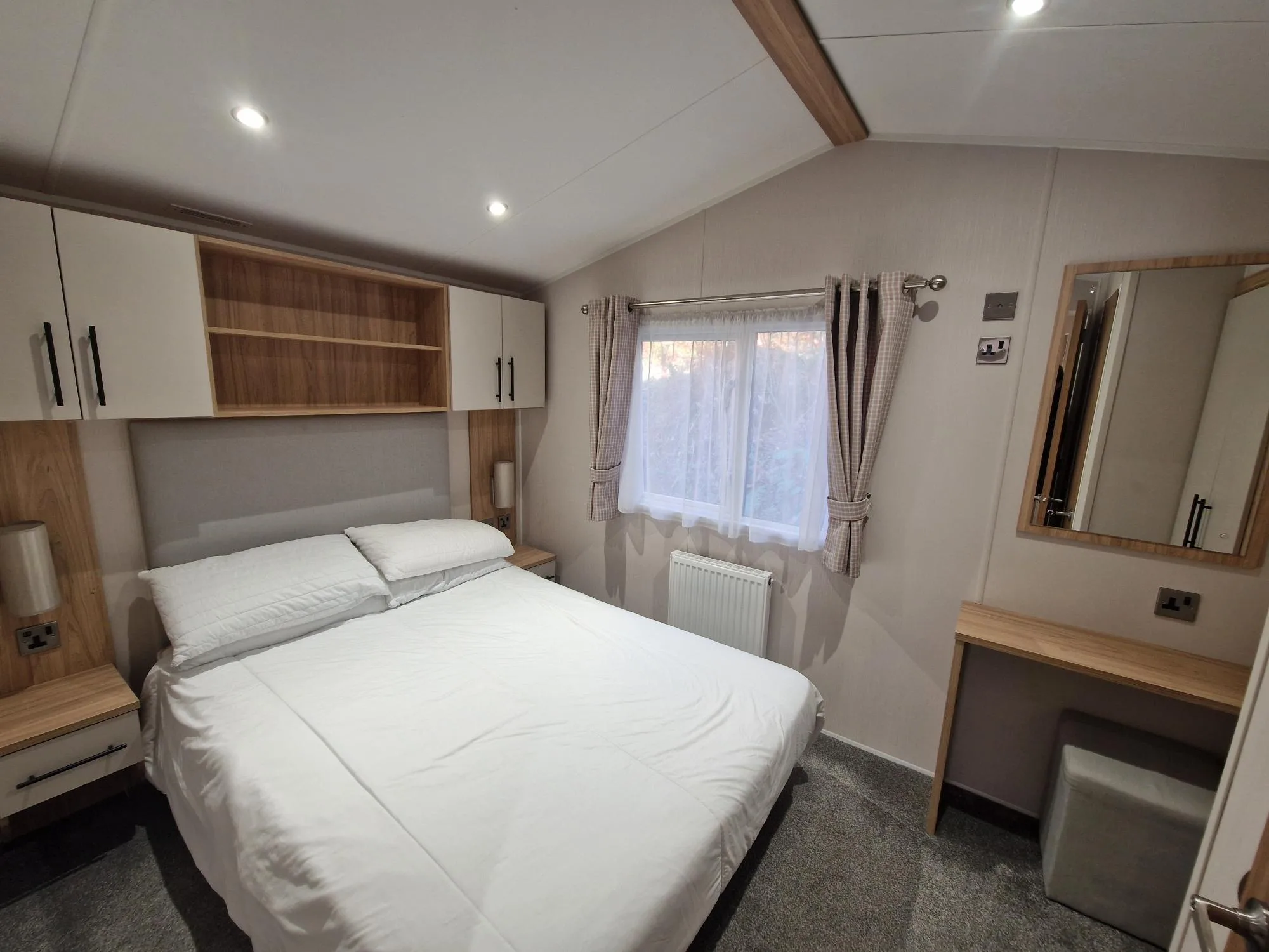 The Manor combines traditional charm with modern comfort, offering a spacious and inviting holiday home. Step into the lounge and sink into the generously sized, freestanding sofas — exceptionally comfortable to capture the best views of the park. One even folds out into a convenient double bed for extra guests. The stylish shaker kitchen is both practical and efficient, with ample worktops, plenty of storage, and under-unit lighting to make cooking effortless. Enjoy meals at the freestanding dining table, perfectly positioned under a large window to fill your space with natural light. In the Three-bedroom models, the main bedroom boasts a luxurious double bed with clever lift-up storage. You’ll also find a full-size wardrobe, and a vanity unit with mirror — perfect for getting ready for a night out, complete with a convenient en-suite WC.