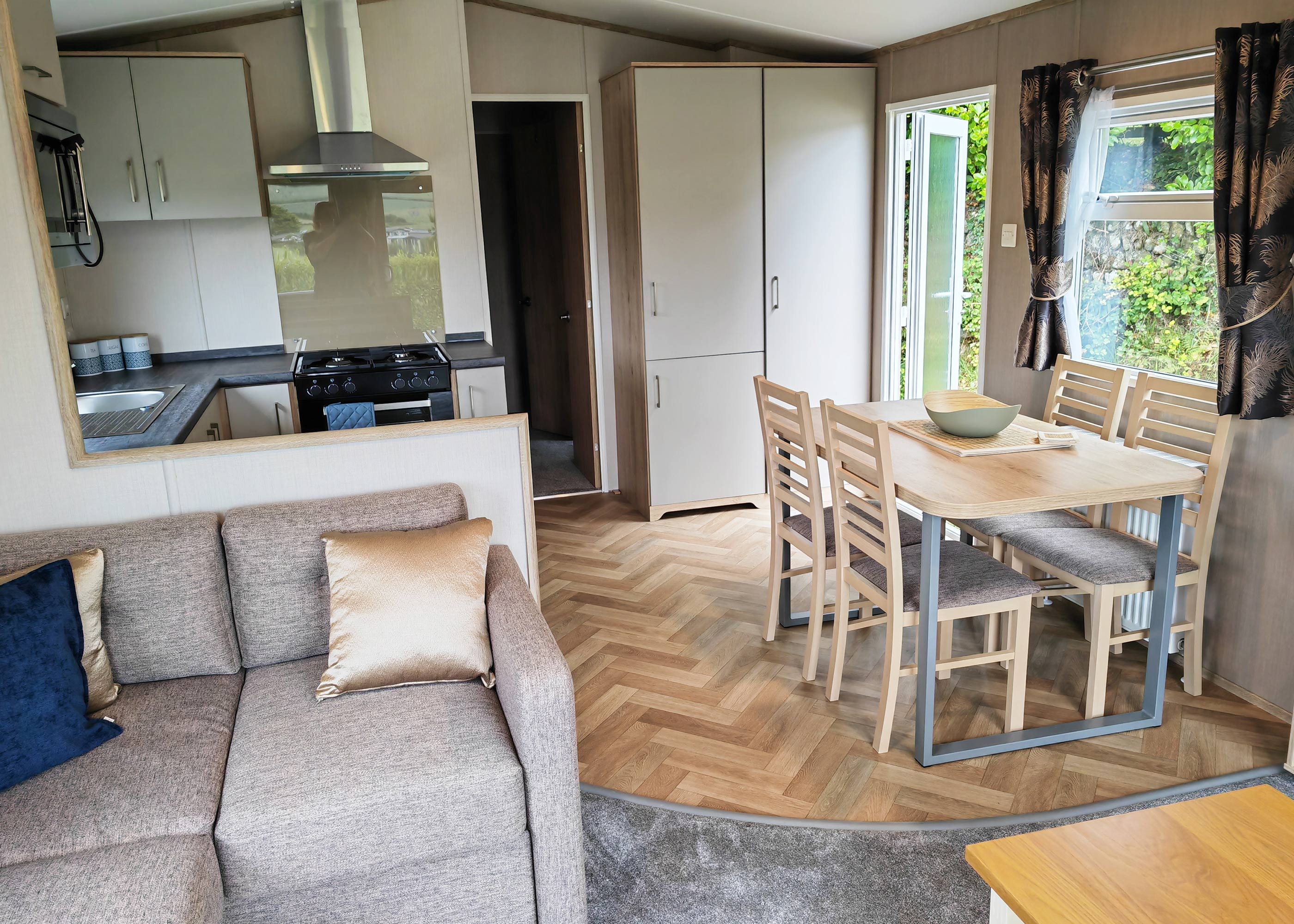 Embrace the ultimate coastal getaway with the Carnaby Ashdale at Praa Sands Holiday Park. Just a five-minute stroll from the beach, this charming retreat is set on a secluded pitch with sweeping panoramic views of the surrounding fields. Whether it’s morning coffee or sunset drinks, the spacious wraparound sun deck offers the perfect place to relax and take in the natural beauty. Inside, the fully equipped kitchen—complete with a convenient dishwasher—makes cooking and cleanup a breeze. The inviting lounge features cosy corner seating and a TV, creating a warm, comfortable space to unwind after a day by the sea. The master bedroom offers a touch of luxury with its king-size bed and generous wardrobe space, while the twin bedroom and family shower room provide everything your guests need for a peaceful, comfortable stay. After a day exploring the nearby sandy shores, round off the evening with your favourite drink at the park’s welcoming onsite bar.