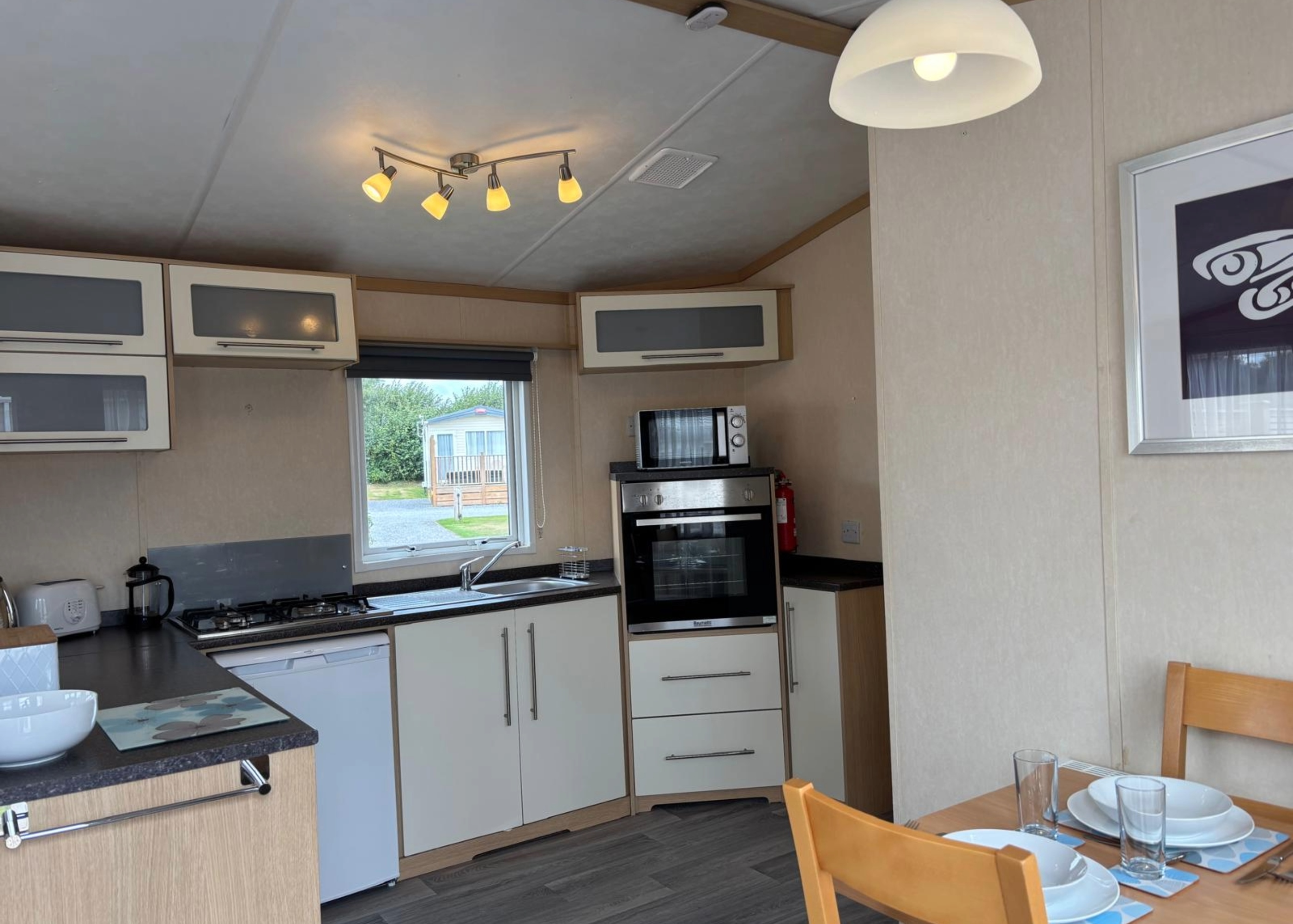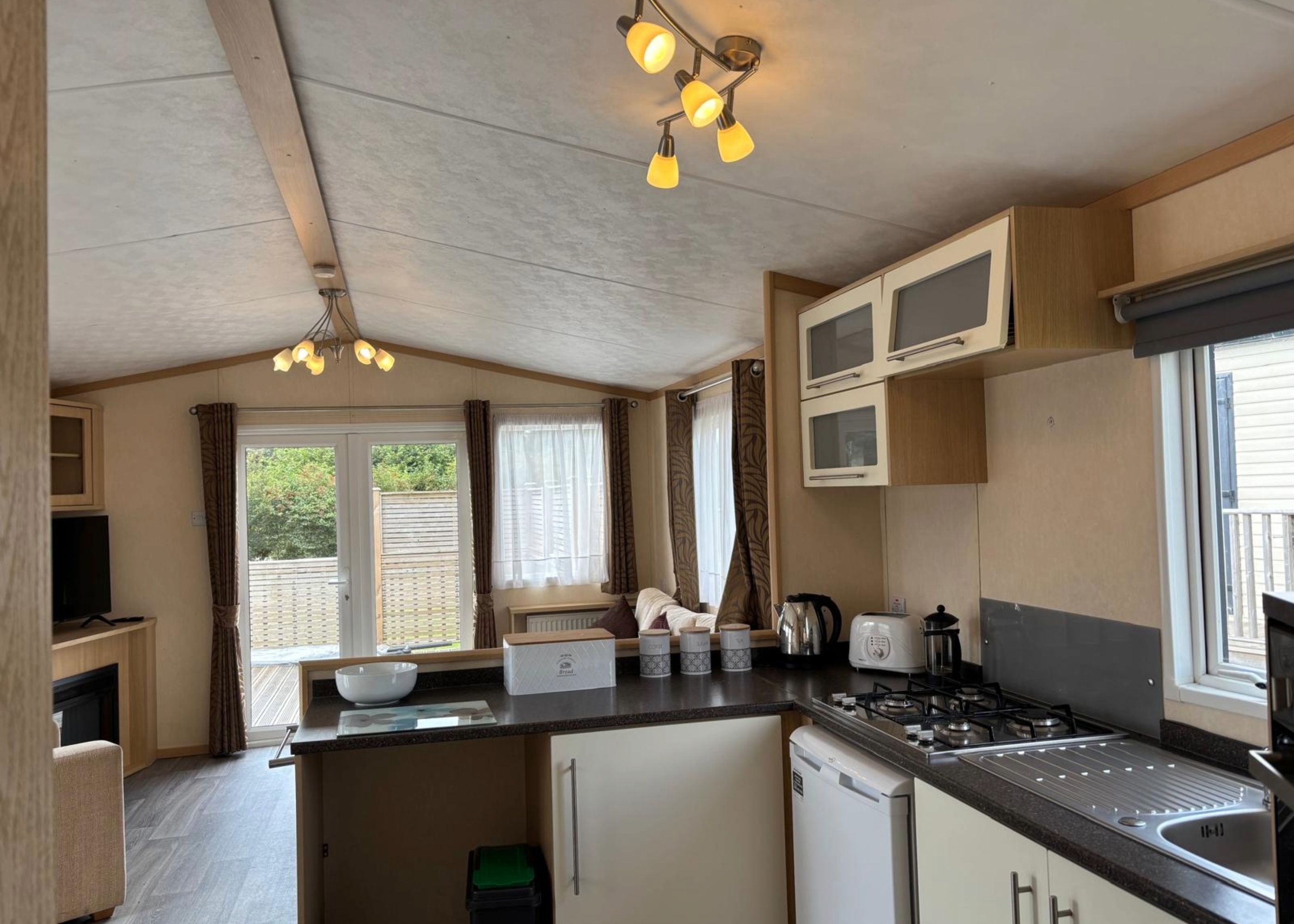 Situated in the peaceful Dartmoor View Holiday Park, the Carnaby Melrose is a welcoming retreat set against the backdrop of Devon’s breathtaking countryside. It’s an ideal place to relax and enjoy the natural beauty of the moorlands. Inside, a bright and spacious open plan layout awaits, perfectly balancing comfort and modern design. Large feature windows and elegant French doors let the light pour in and open out onto a generous decking area - perfect for soaking up the fresh country air. At the heart of the lounge, a roomy L-shaped sofa invites you to unwind in total comfort. The kitchen is fully integrated and thoughtfully laid out to make mealtimes easy. With all the essentials in place, you’ll have everything you need to cook, dine, and entertain effortlessly. At the end of the day, the master bedroom offers a restful sanctuary, complete with a plush double bed and a private ensuite. The second bedroom features twin beds and a central bedside unit, creating a smart and comfortable setup for visiting family or friends. Whether you're seeking a quiet escape or a base for adventure, this stylish holiday home offers the perfect place to enjoy Devon at its best.