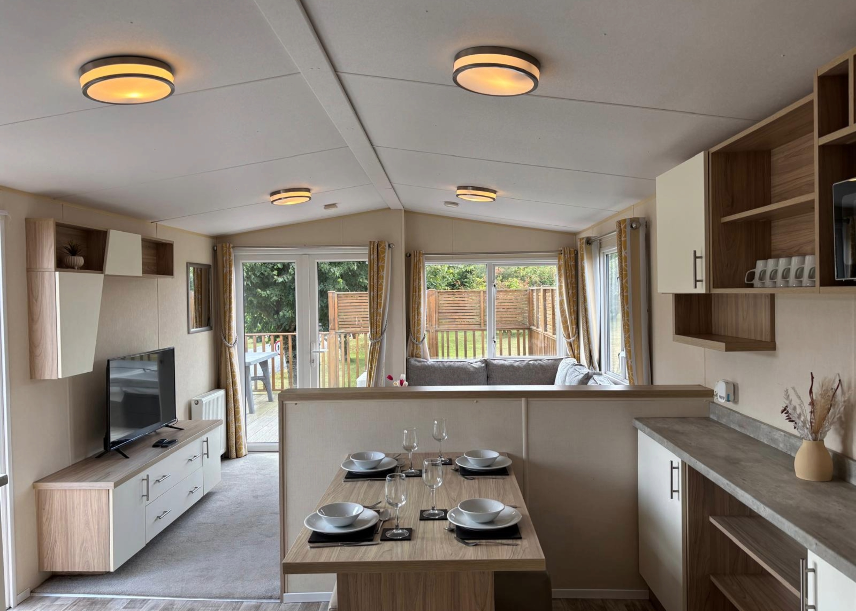 Situated in the tranquil setting of Dartmoor View Holiday Park, the Regal Kingsbury offers a cosy retreat surrounded by the scenic beauty of Devon’s countryside. With sweeping moorland views, it’s a wonderful place to escape the everyday and unwind in nature. Inside, the open plan living area is bright and welcoming, with large patio doors that let in plenty of natural light and open directly onto a spacious decking area. It’s the perfect spot for morning coffee or an evening drink outdoors. For added indulgence, the private hot tub provides a peaceful haven to relax and enjoy the calm surroundings. The modern kitchen is fully integrated and includes a washing machine, making it easy to settle into a convenient and comfortable holiday routine. The master bedroom features an ensuite and offers a restful space to recharge, while the second bedroom—with twin beds—is ideal for visiting guests or family members. Whether you’re planning laid-back days in the countryside or exploring everything Devon has to offer, this inviting holiday home is a fantastic base for your next getaway.