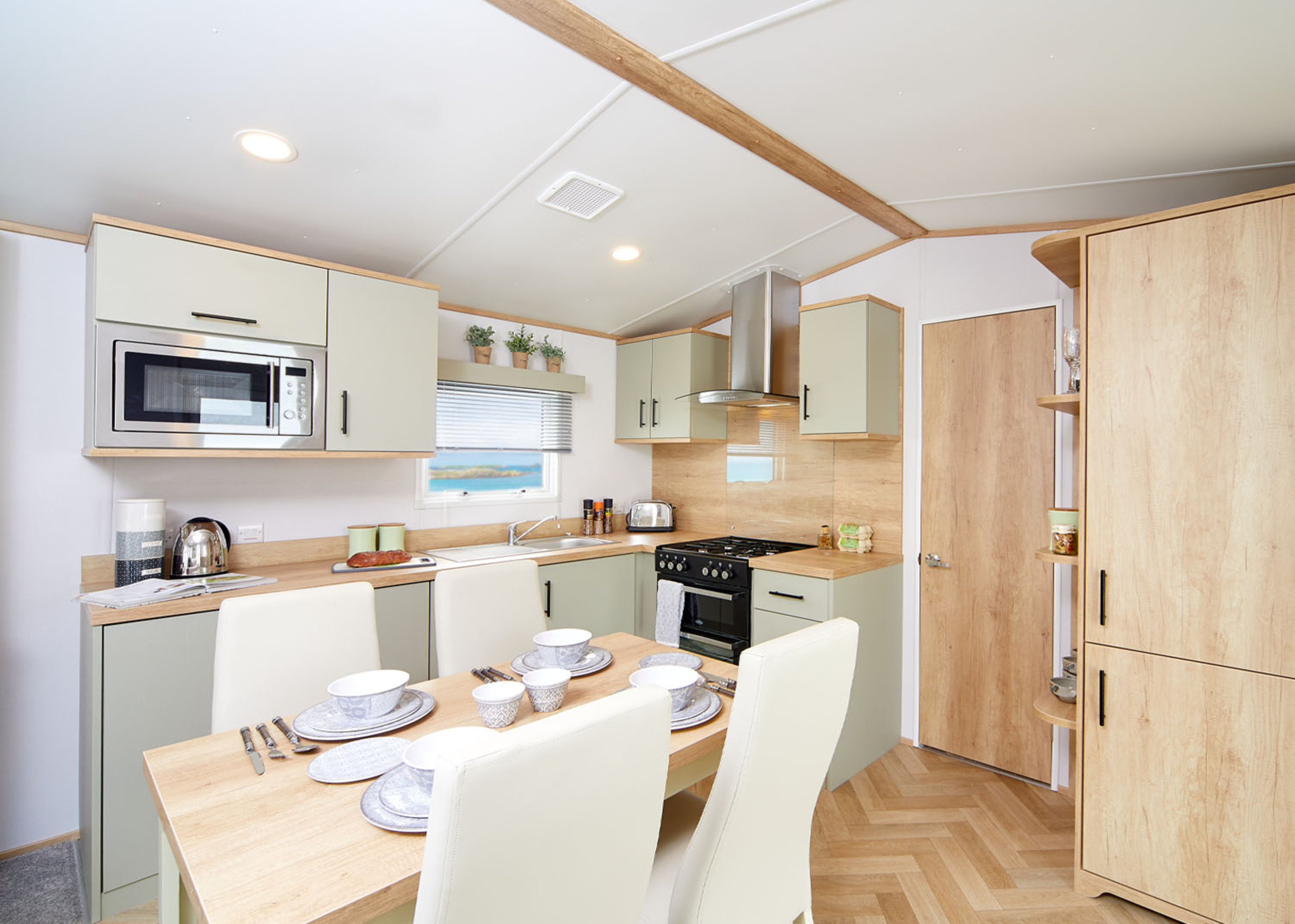 Experience the Oakdale, a holiday home that embodies the 'everything you need' approach. Crafted over the years, it offers the perfect blend of comfort, practicality, and luxury. From its striking features like deep oak timber with pewter accents to convenient details such as USB charging sockets, the Oakdale has been meticulously designed to provide you with all the comforts you desire. The well-equipped kitchen boasts a twin cavity oven, gas hob, and an integrated fridge freezer. An externally vented cooker hood is included as standard, ensuring a pleasant cooking experience. And the best part? The price includes everything you need to make this your ideal holiday home, from siting and connection to a decking and skirting package. It even comes fully furnished with all the necessary gas central heating and high-speed fiber Wi-Fi. Your holiday escape is ready and waiting for you.