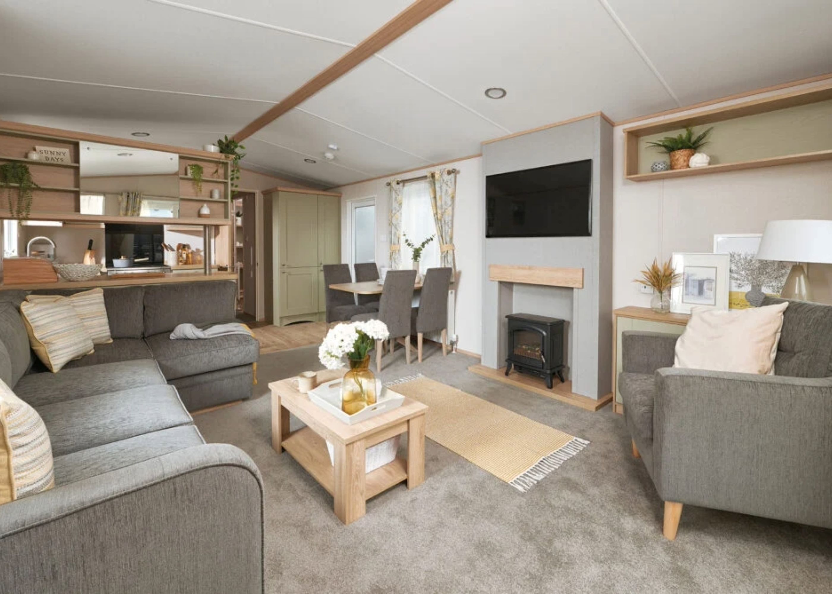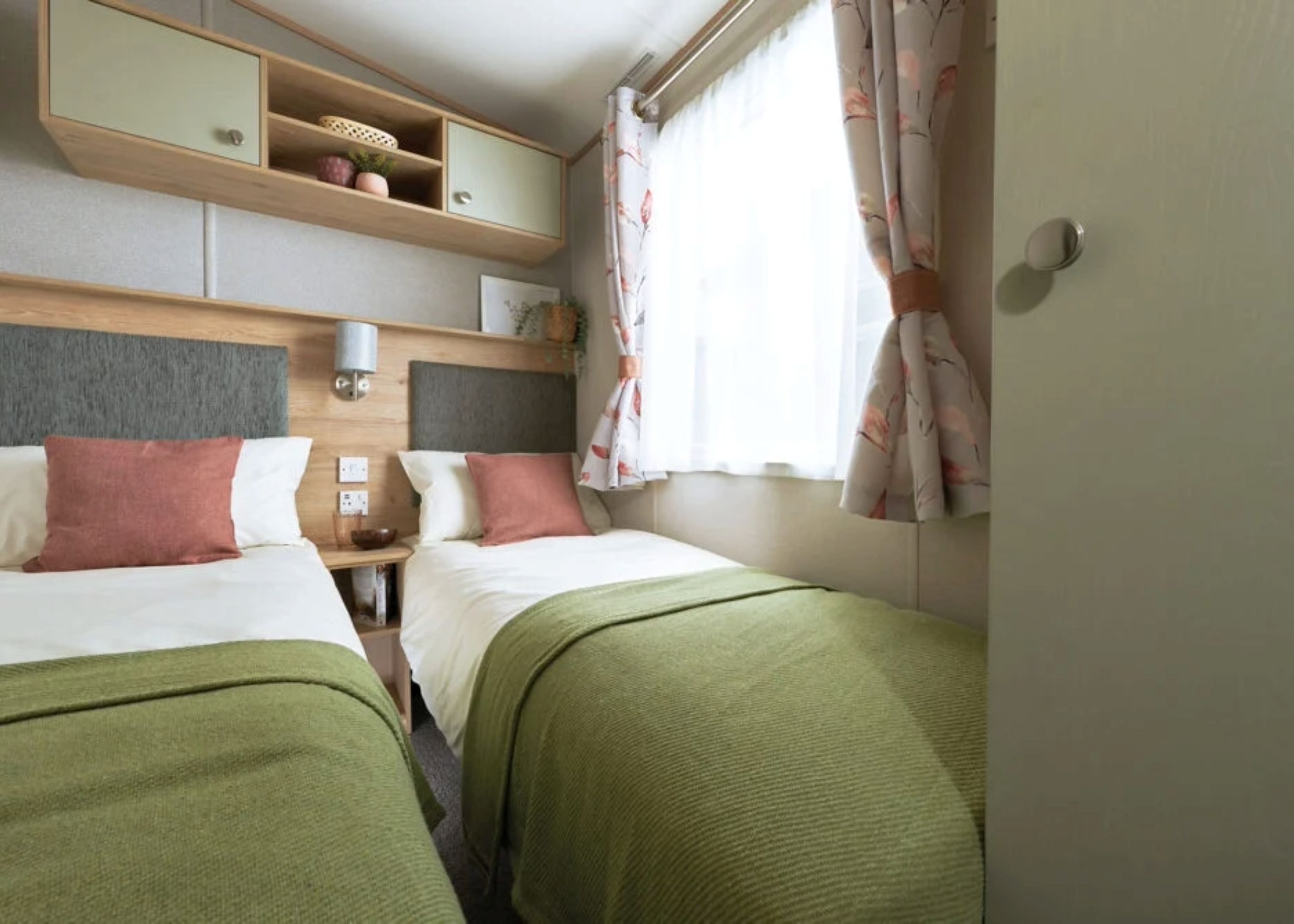 Escape to the peaceful countryside with this charming holiday home, featuring an open-plan lounge and kitchen. Spend lazy afternoons watching films by the electric fireplace, creating a warm and inviting space. The fully equipped kitchen makes it easy to prepare meals to share in the cosy dining area. It’s the perfect spot to make lasting memories with family or friends. The master bedroom offers ultimate comfort for a restful night’s sleep, and there’s a handy second toilet. The twin bedroom provides a spacious retreat with plenty of storage, ideal for guests or children. The wrap-around deck is perfect for soaking up the summer sun. For added luxury, consider adding a hot tub. This home blends relaxation, comfort, and countryside charm.