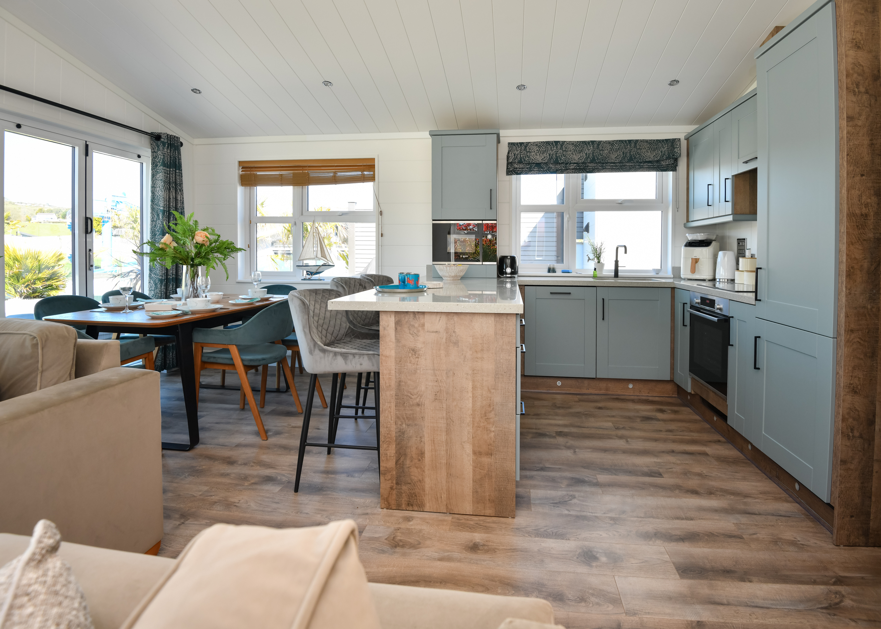 This charming pre-loved Wessex Dune holiday home at The Warren Resort & Spa is ideally located in the heart of the resort, just a stone’s throw from the leisure facilities, with stunning countryside views to enjoy. Step through the large bi-fold doors into a bright and welcoming living area, where high ceilings and expansive windows create an airy, open atmosphere. The cozy sofas are perfect for relaxing, whether you're watching your favorite movie or simply enjoying the tranquil surroundings. Outside, the generous decking area provides the perfect spot to entertain, bask in the sunshine, or unwind to the soothing sounds of nature. The open-plan kitchen, complete with plenty of storage and fully integrated appliances, makes meal preparation effortless. The breakfast bar adds a casual, family-friendly touch, ideal for a quick bite before you head to the nearby beach, just a short walk away. With three spacious bedrooms and two beautifully designed bathrooms, this lodge offers the perfect blend of modern style and comfort.