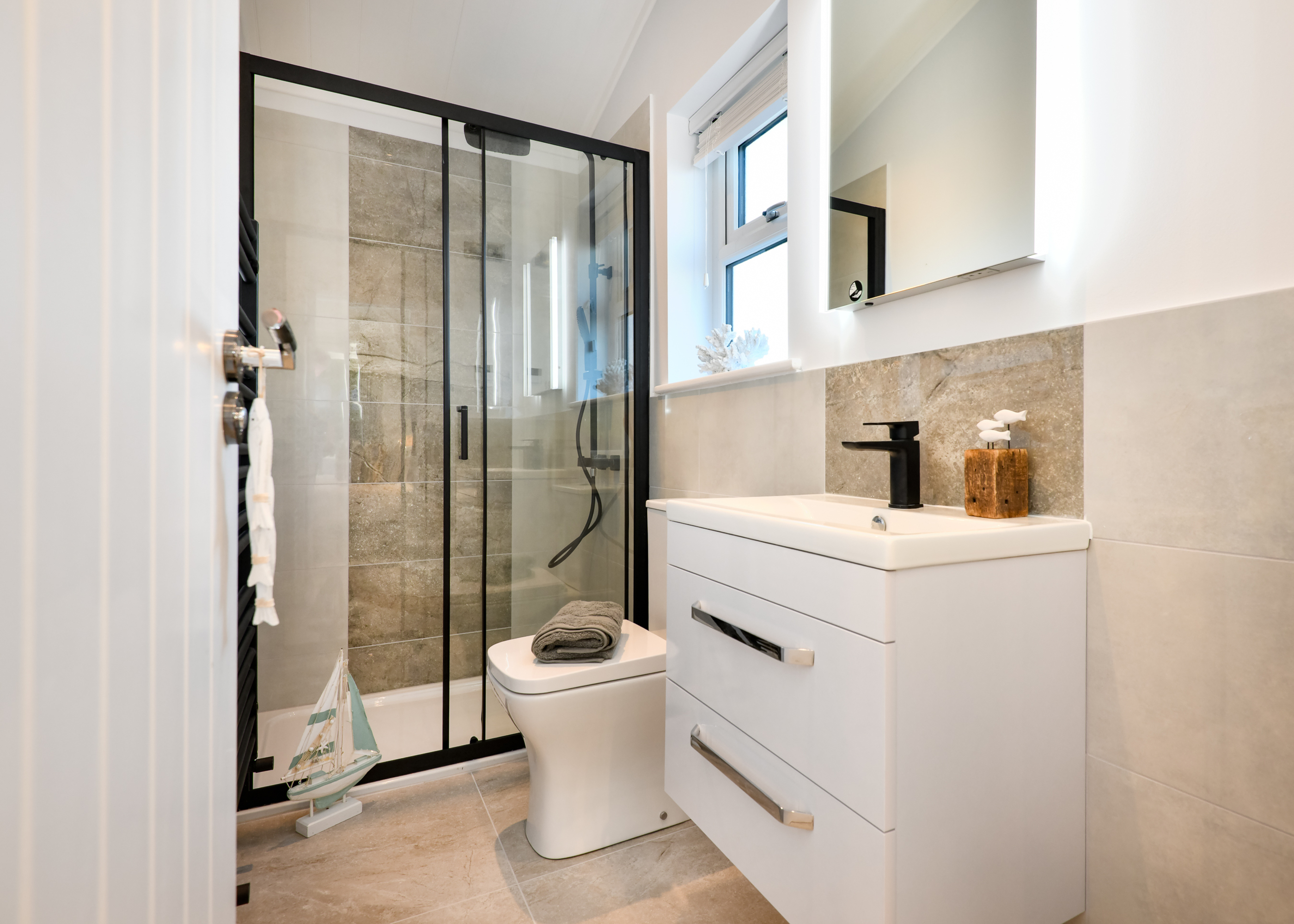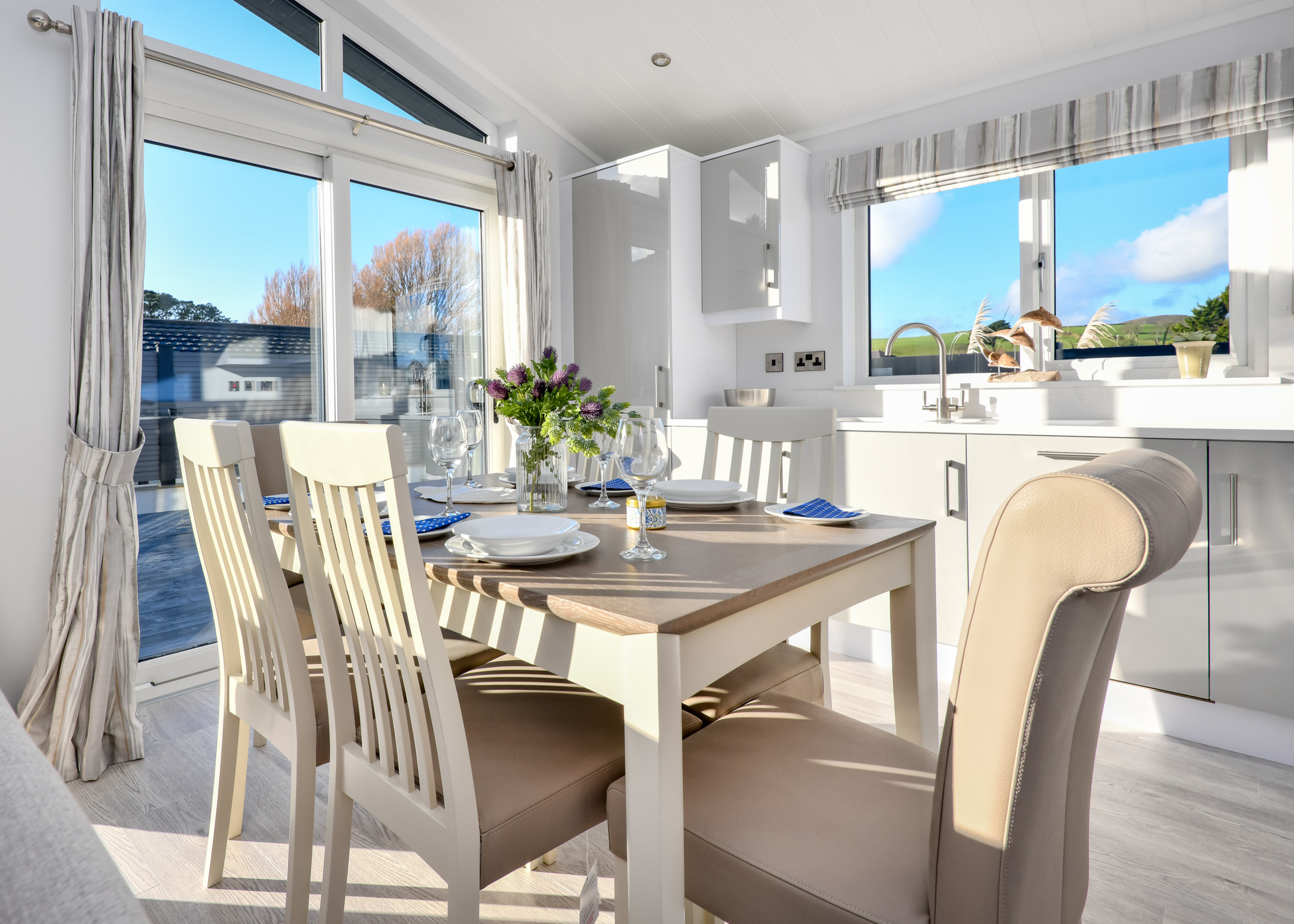 The Oakgrove Osprey is a holiday home located in the heart of The Warren Resort & Spa. From the spacious decking area, you can take in breathtaking views of the nearby mountains while enjoying the comfort of your luxurious lodge. With its high ceilings and open-plan layout, this lodge feels bright and airy - perfect for embracing the refreshing coastal breeze. After a day exploring the area, there’s no better place to relax than on one of the two cosy sofas with your favourite drink in hand. The stylish, fully equipped kitchen is ideal for cooking up anything from hearty meals to sweet treats, while the adjoining dining area is perfect for enjoying quality time with loved ones. The master bedroom features a sleek modern ensuite and is thoughtfully designed to ensure a restful night’s sleep. Two twin bedrooms offer a peaceful retreat for family or guests, surrounded by the tranquillity of nature.