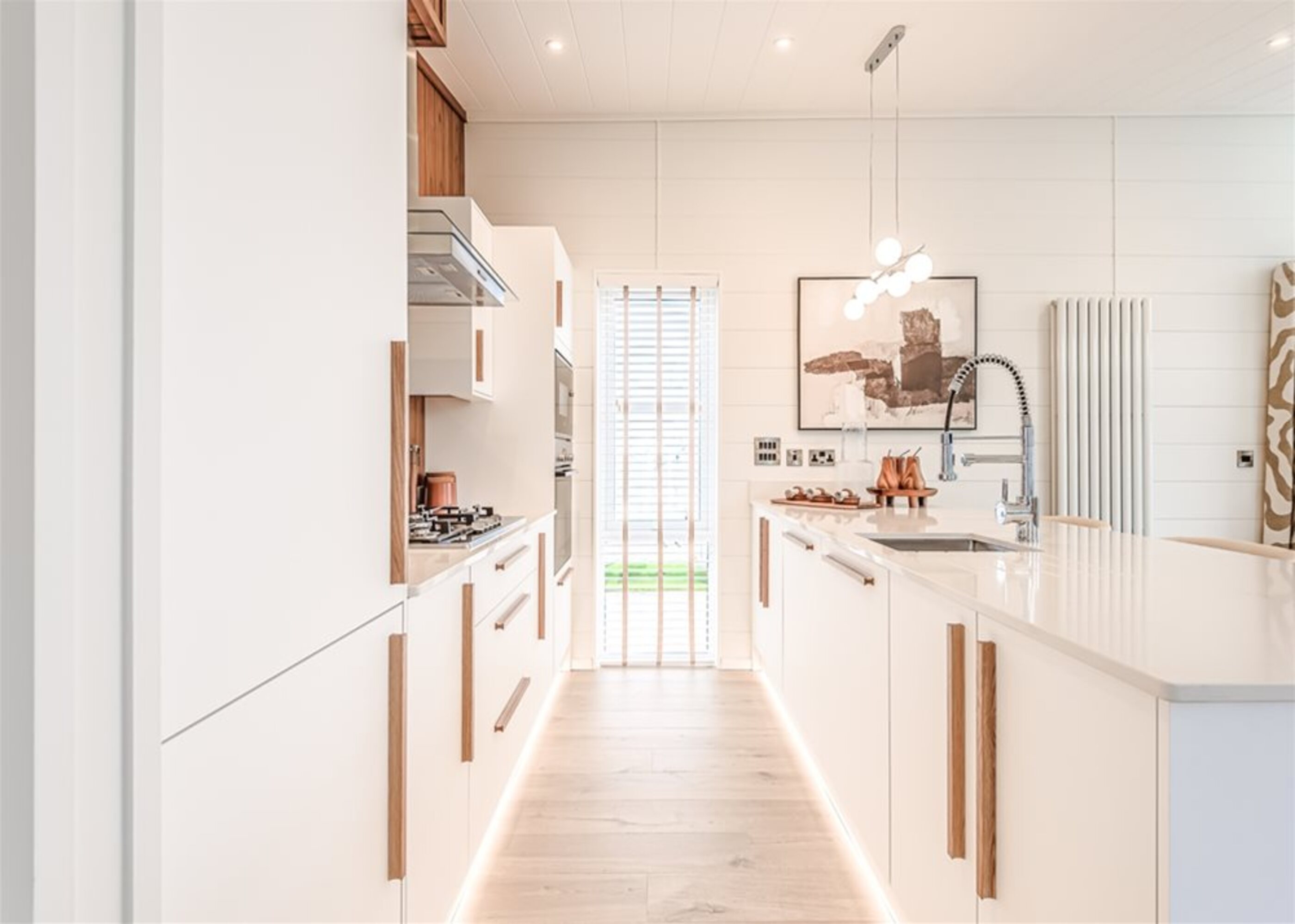 Set in the heart of the countryside with far-reaching views of the surrounding headlands, the Prestige Aura is a truly remarkable holiday retreat. Inspired by the relaxed elegance of Malibu beach houses, it features striking split-level pitched roofs and a generous porcelain patio. The millboard decking is ideal for taking in the landscape, enjoying alfresco dining, or simply unwinding in the crisp country air. Step inside and you're greeted by a warm, inviting ambiance and an abundance of natural light. The comfortable sofa and plush snuggle chairs offer the perfect spots to relax, whether you're reading a book or enjoying a quiet evening in. The kitchen is fully integrated and designed with both style and functionality in mind. Outfitted with high-end Bosch appliances and contemporary finishes, it makes preparing meals a pleasure. Flowing seamlessly from the kitchen, the dining area provides a welcoming space to entertain or share family dinners in comfort. The spacious master bedroom boasts a sumptuous super king bed, generous storage, and a private ensuite. Two additional bedrooms offer calm and cosy accommodation for guests or children, while a stylish family bathroom ensures everyone’s needs are met. With access to an exceptional spa and onsite facilities, this beautiful lodge strikes the perfect balance between tranquillity and convenience. Whether you're venturing out to explore the local countryside or relaxing on your private sun deck, the Prestige Aura embodies the best of rural living.