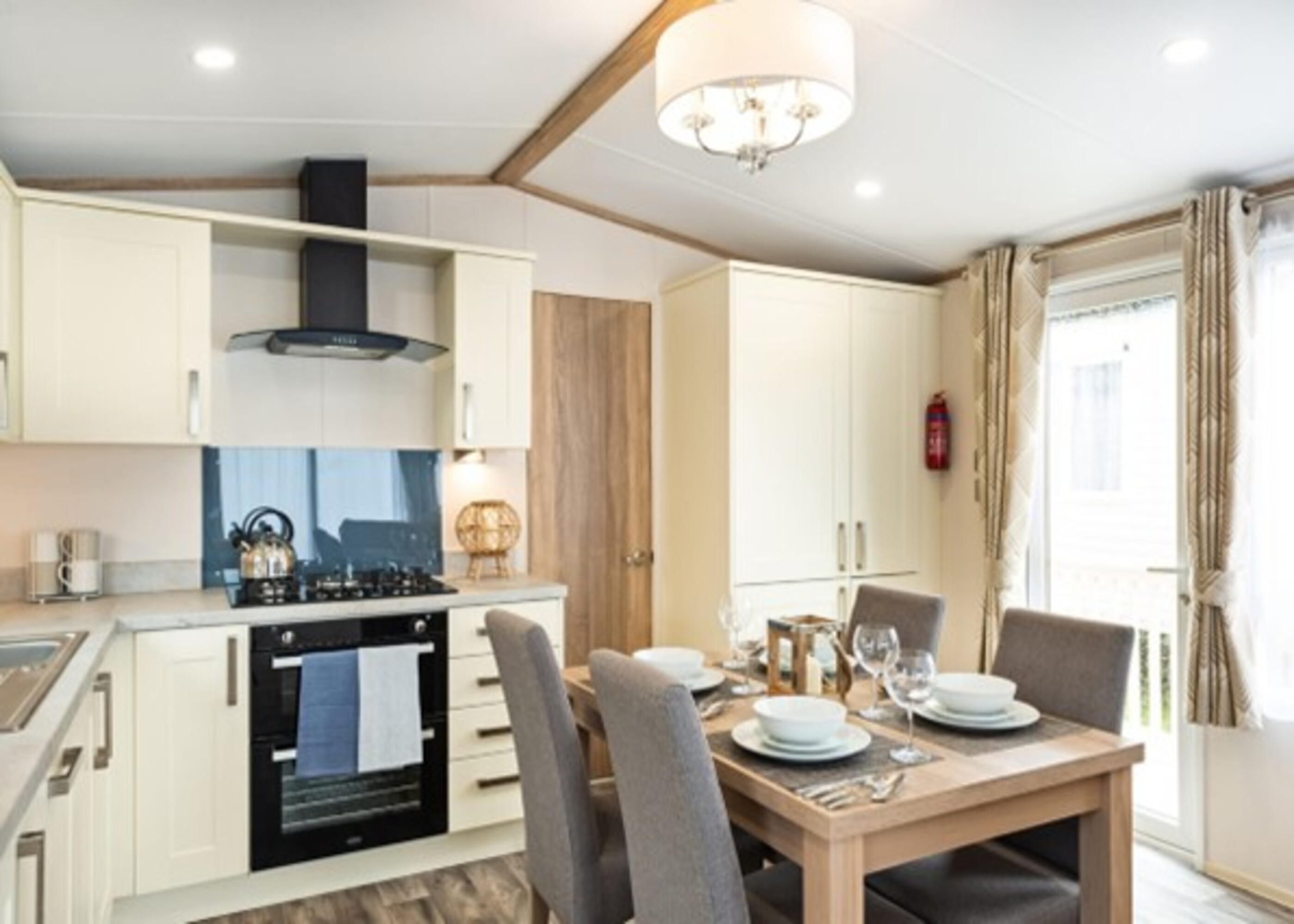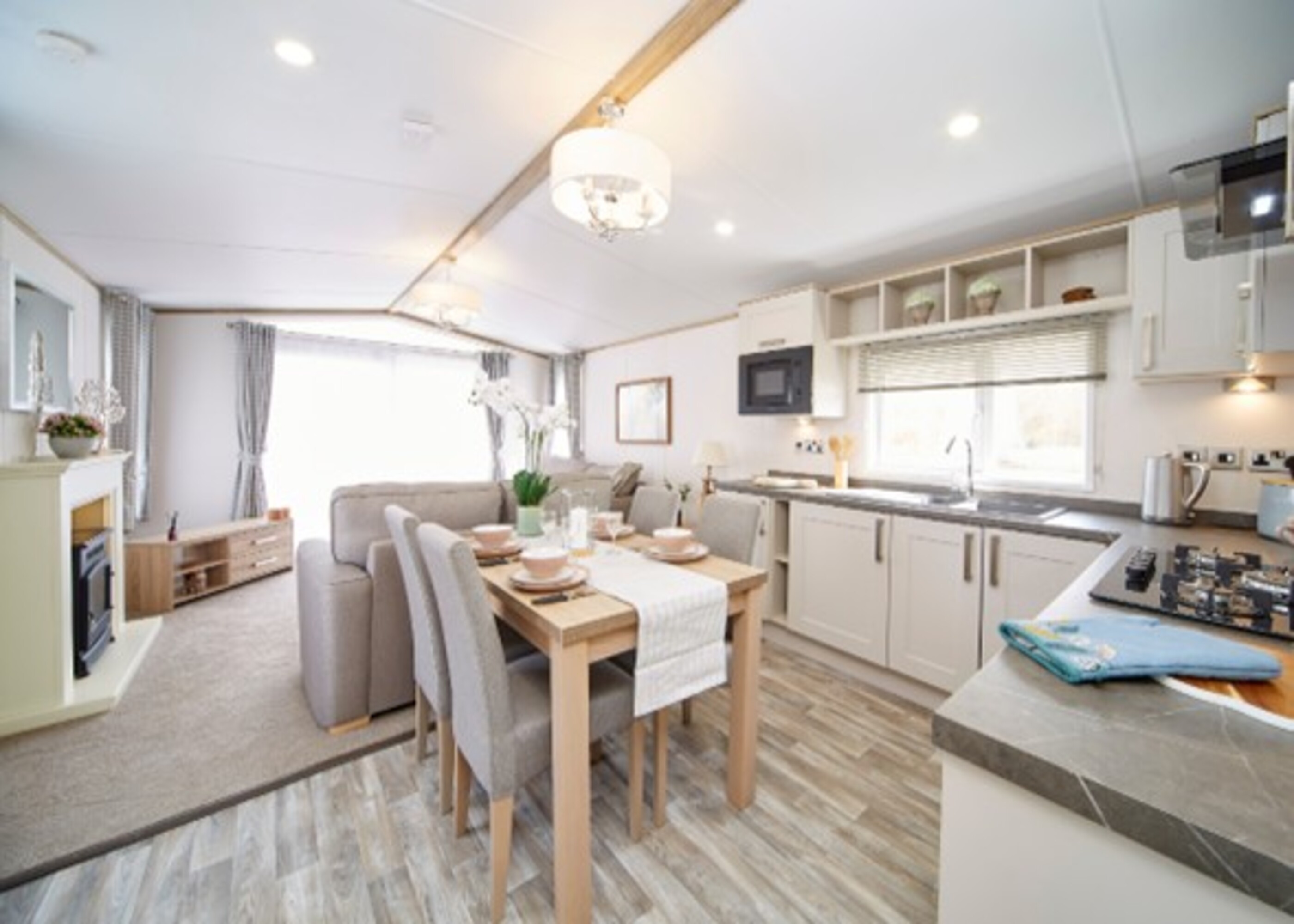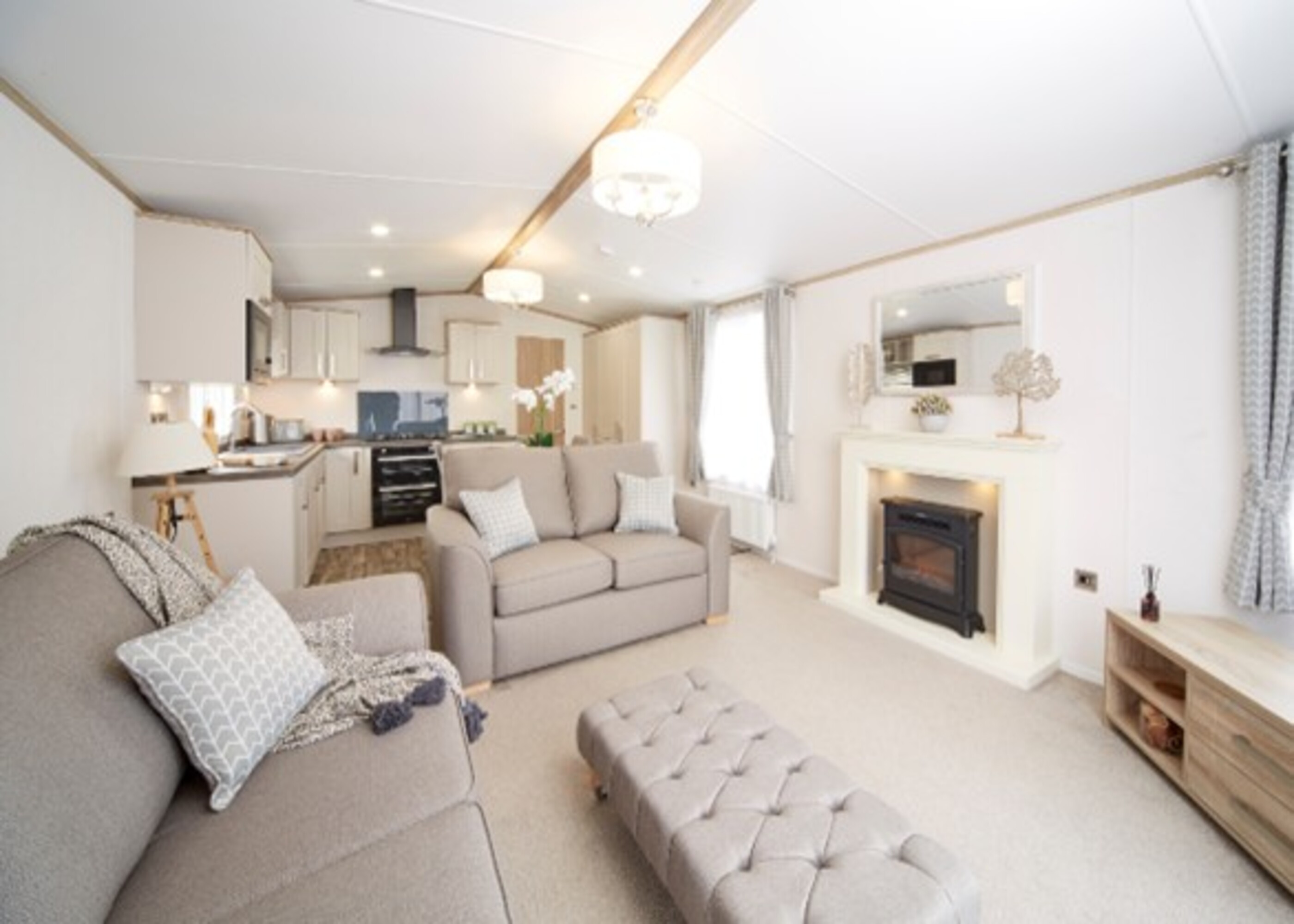 The Sunseeker Supreme is the perfect choice for those seeking modern comfort and a relaxing escape in a beautiful natural setting. Whether enjoying gentle walks or exploring nearby trails, it provides an inviting base for family and friends. The open plan living area is bright and welcoming, featuring a feature fireplace, Smart TV, and free Wi-Fi. The fully equipped kitchen includes a gas hob, electric fan oven, microwave, fridge/freezer, and dishwasher, making meal preparation effortless and enjoyable. With three bedrooms- one double and two twins - there is plenty of space for everyone. The master bedroom features a Smart TV and ensuite shower, while a separate shower room provides added convenience. Full double glazing and gas central heating ensure comfort throughout the year. Outside, a large front and side decking area with outdoor furniture and a private hot tub offers the perfect spot to unwind and enjoy the peaceful surroundings.