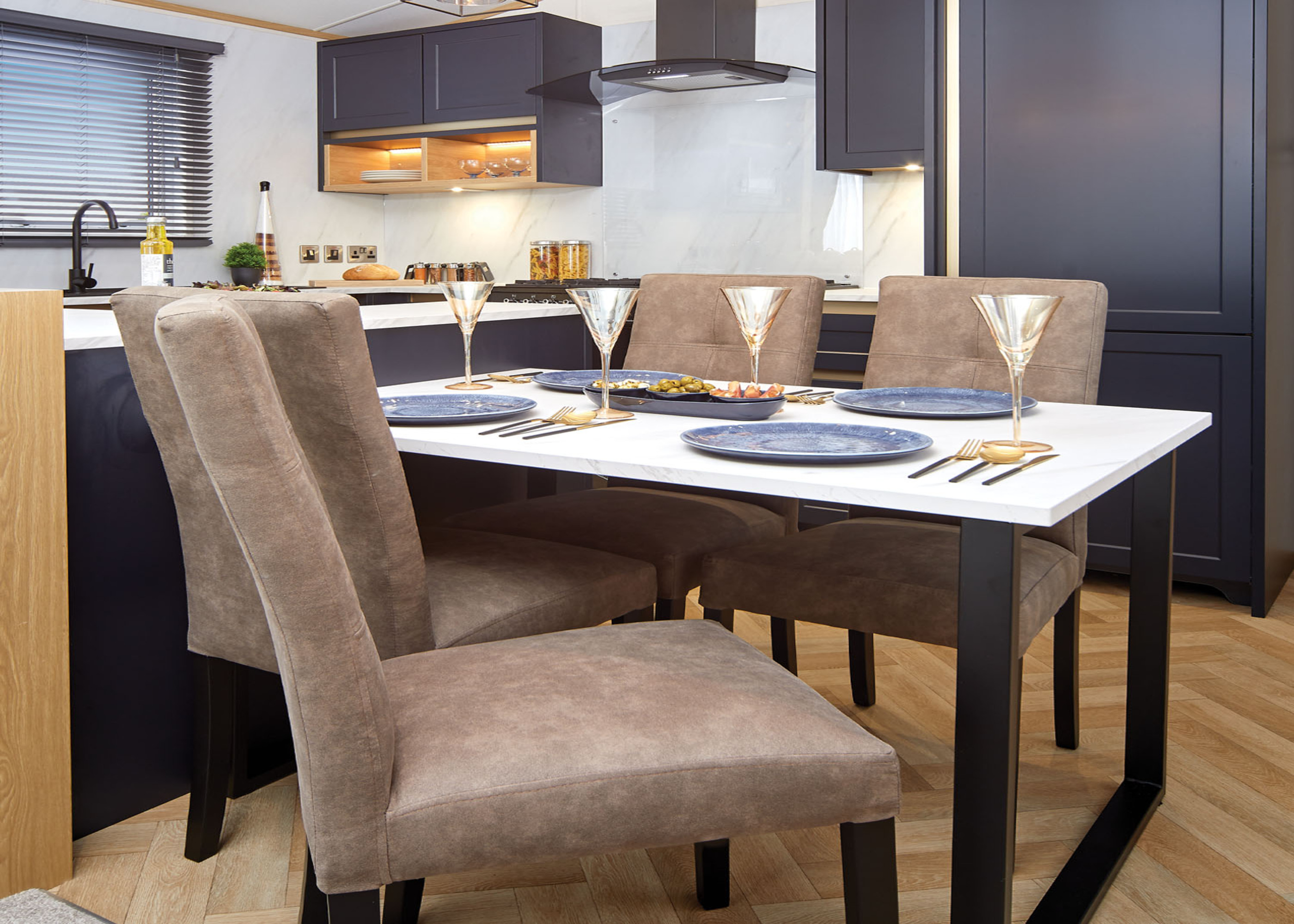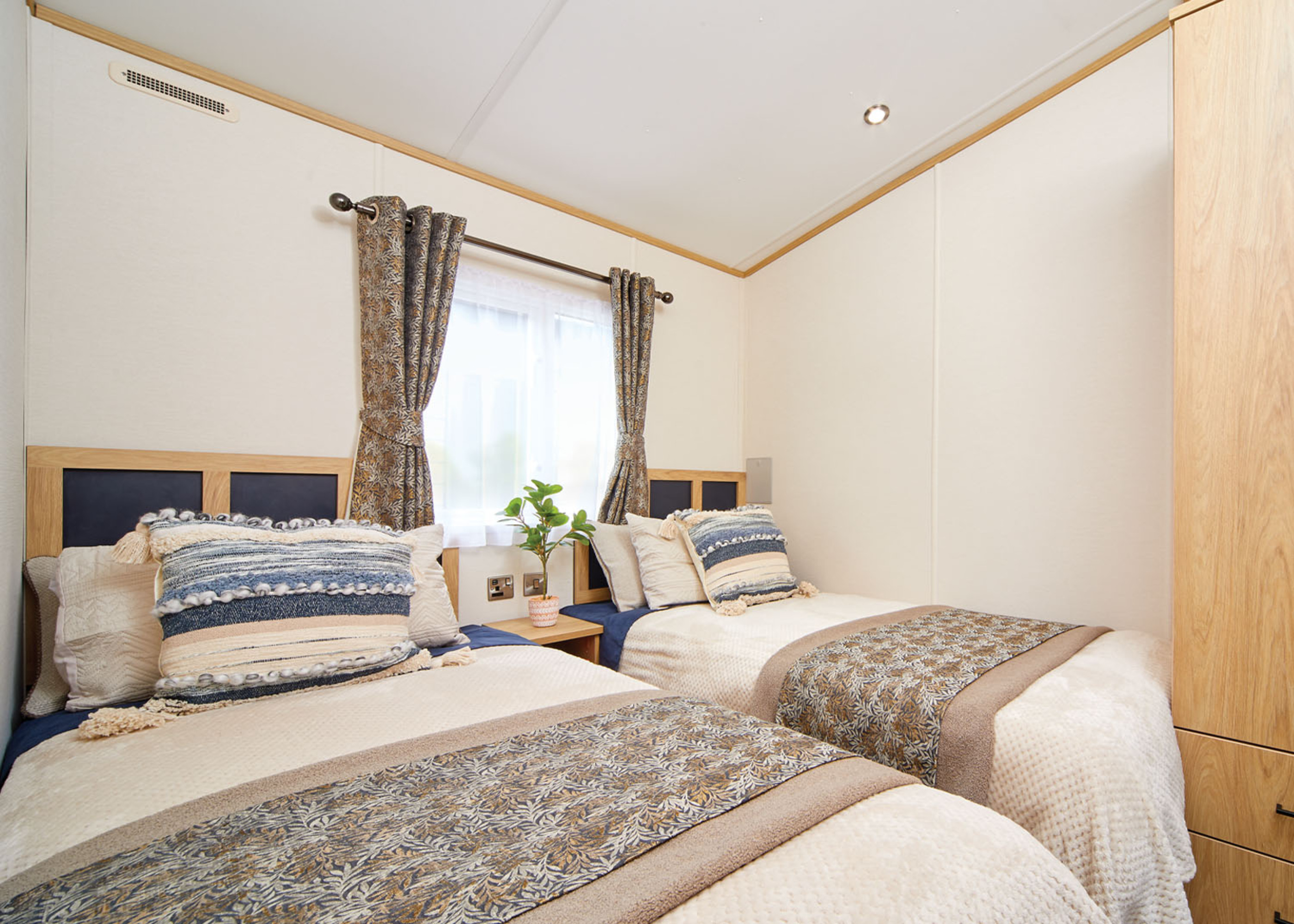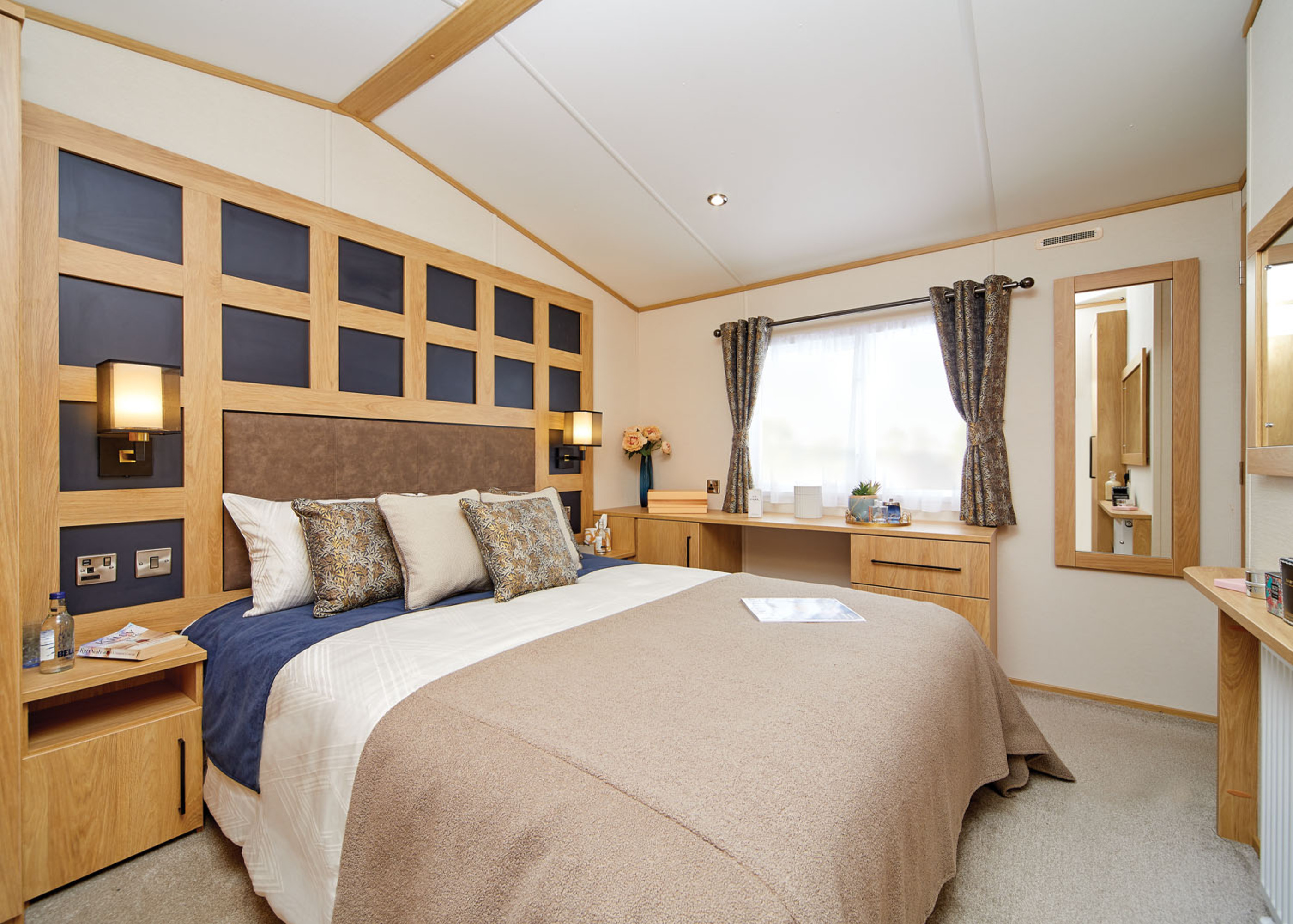 Discover a haven of comfort at the Chantry Lodge, a beautifully positioned holiday home set in a tranquil, secluded location. Immerse yourself in the peaceful surroundings and enjoy a truly restful escape. The open-plan living space is elegant and inviting, featuring contemporary blue and cream accents. Relax on the large, comfortable sofa beside the striking glass-fronted fire, or open the patio doors to fill the room with natural light and fresh air. The adjoining kitchen combines stylish finishes with practical design, making meal preparation both easy and enjoyable. The spacious master bedroom offers a restful retreat with its own full-sized ensuite shower room, while the additional bedroom provides a calm space for family or guests. Together, they ensure everyone enjoys a comfortable and rejuvenating stay.