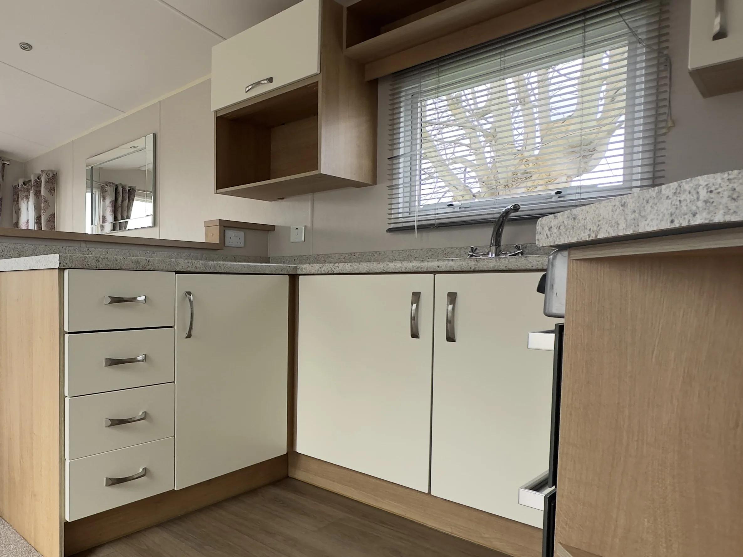 Designed to feel like a true home-from-home, its spacious layout features a comfortable wraparound sofa, a stylish feature fireplace, and neutral tones throughout, creating a relaxed and calming atmosphere. With three bedrooms—one double and two twins—there's plenty of room for the whole family, each with ample storage. The family shower room is generously sized, and there's the added convenience of a separate WC/Cloaks. Don't miss out on this fantastic opportunity—be quick to make it yours!