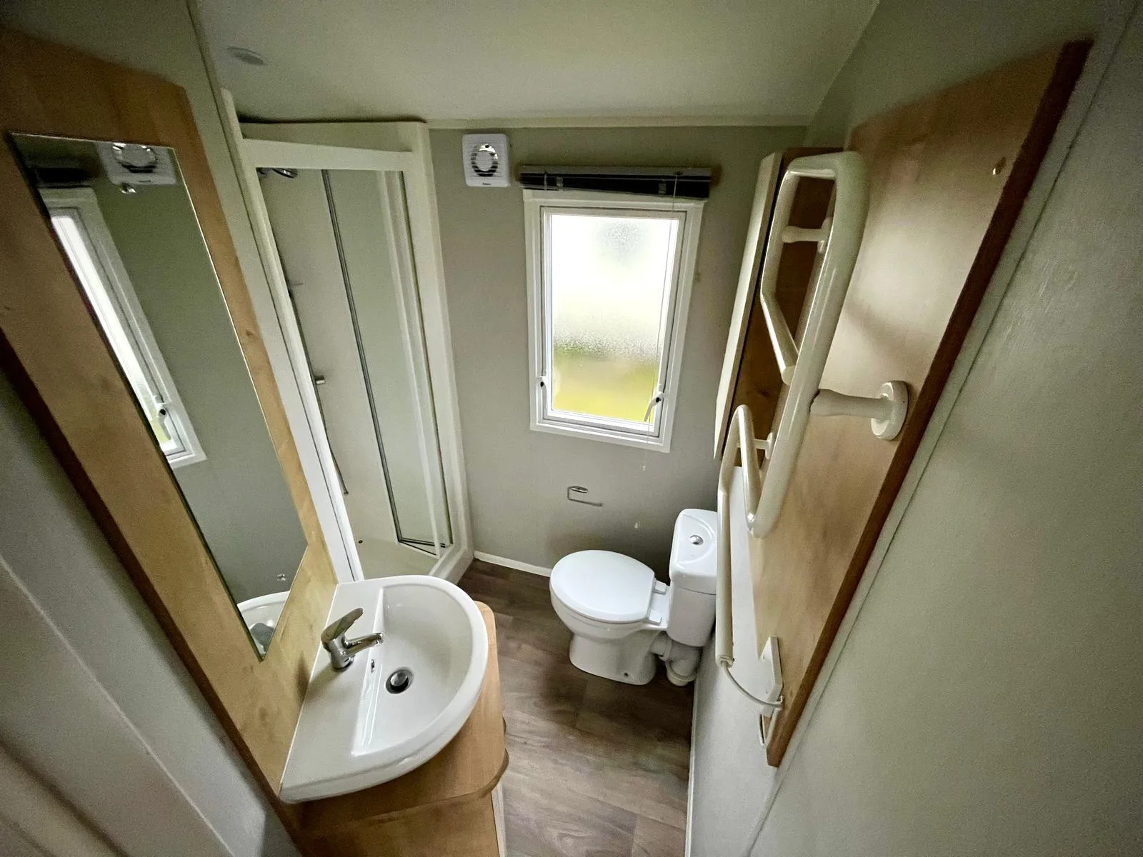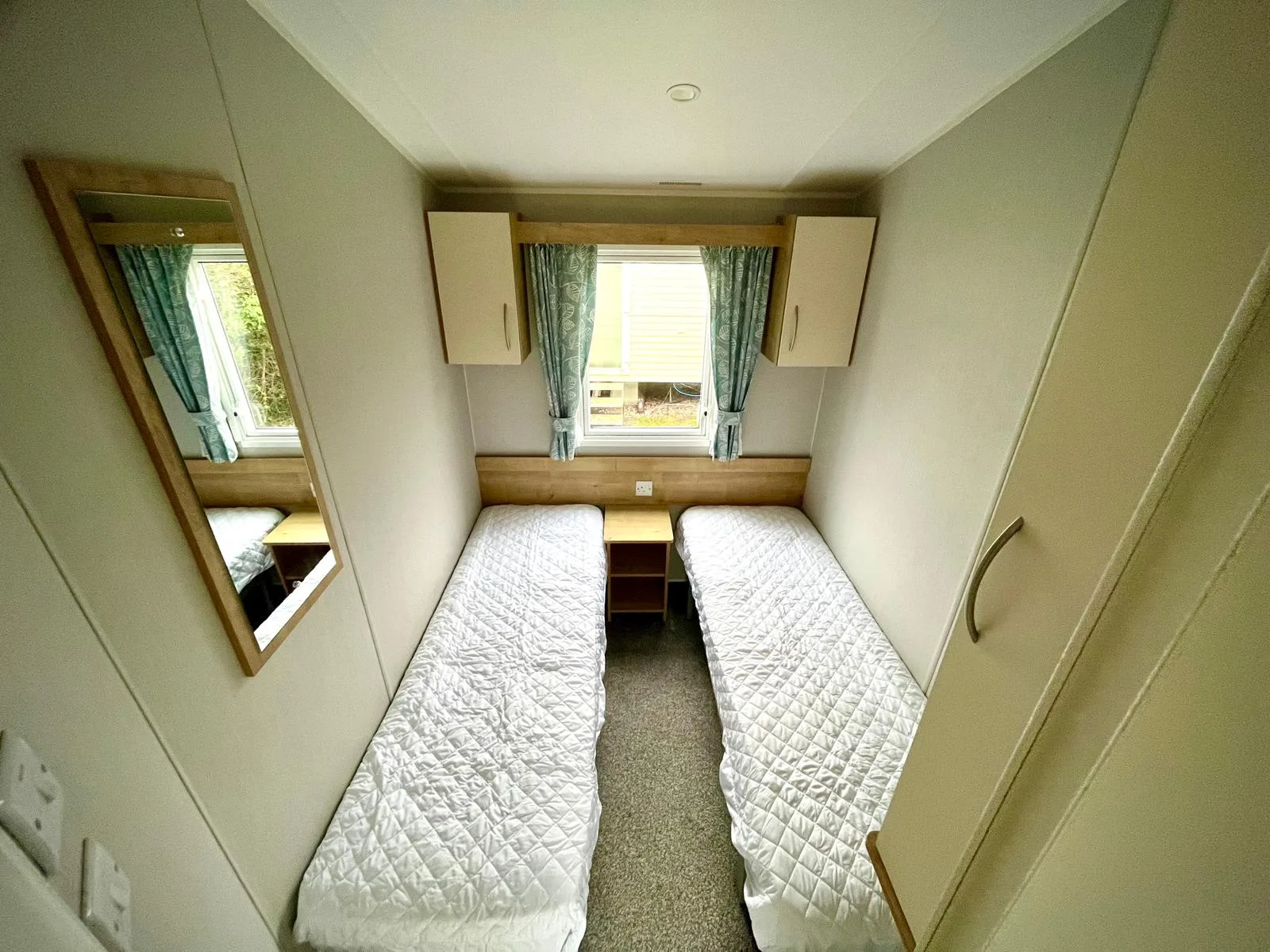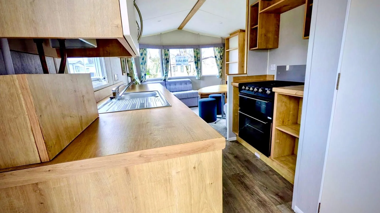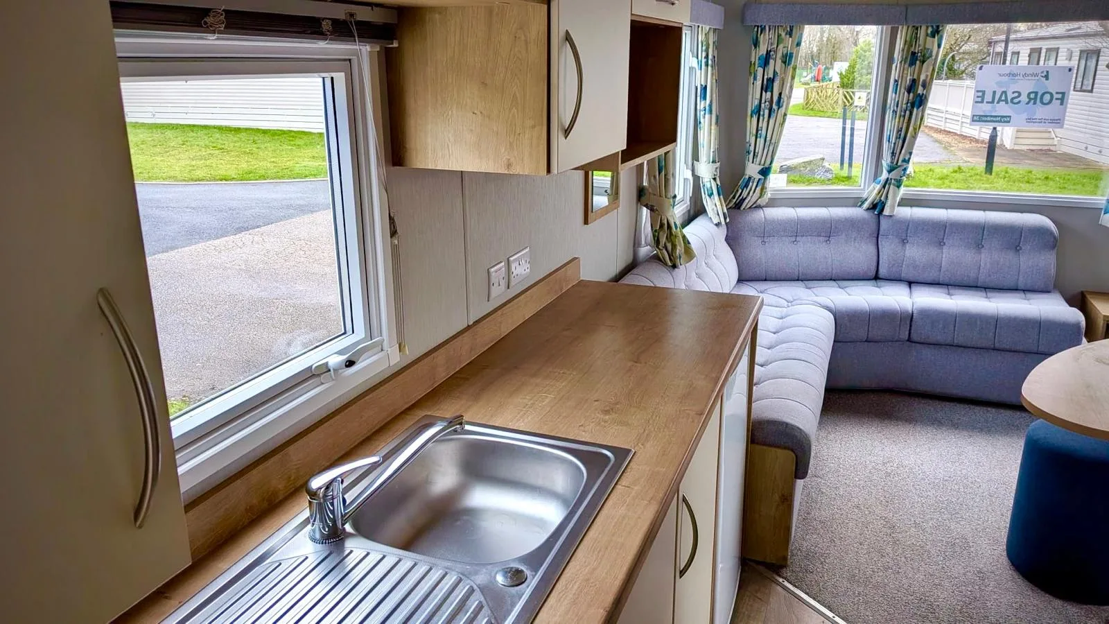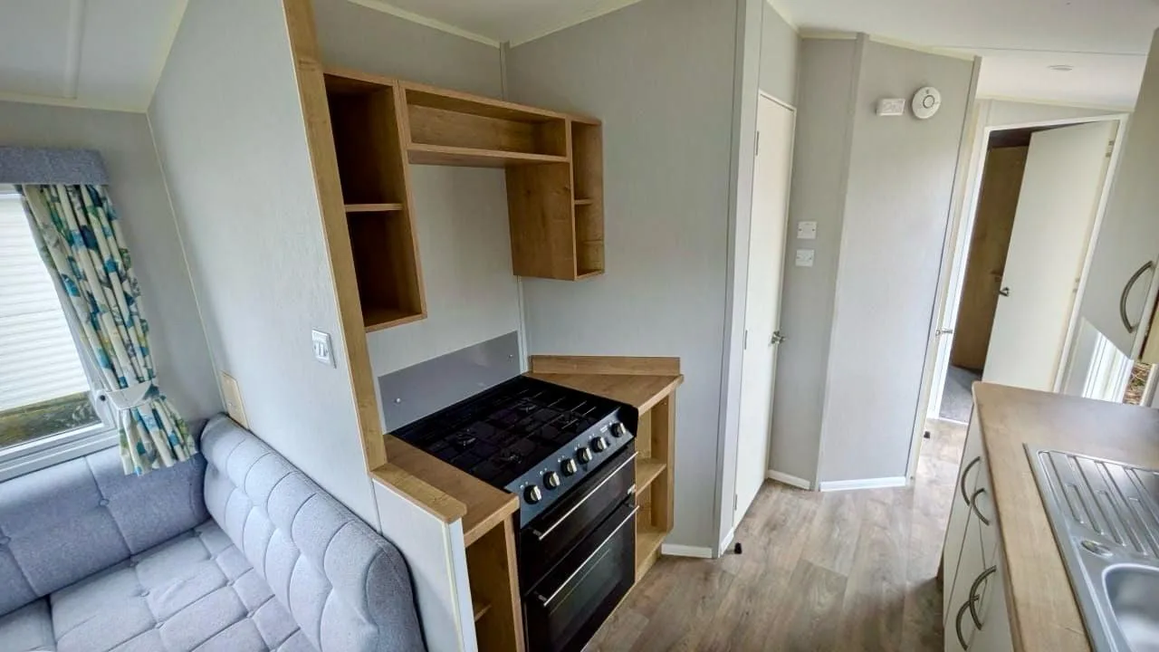 Complete with a fantastic side decking, this static caravan offers both outdoor and indoor comfort. Inside, you'll find a spacious living area with a generous wraparound sofa bed, perfect for relaxing or entertaining. A separate dining area ensures plenty of space for family meals. The fully fitted kitchen features a practical galley layout, making the most of the space for all your cooking needs. With two well-sized bedrooms, each offering ample storage, this holiday home delivers both functionality and comfort.