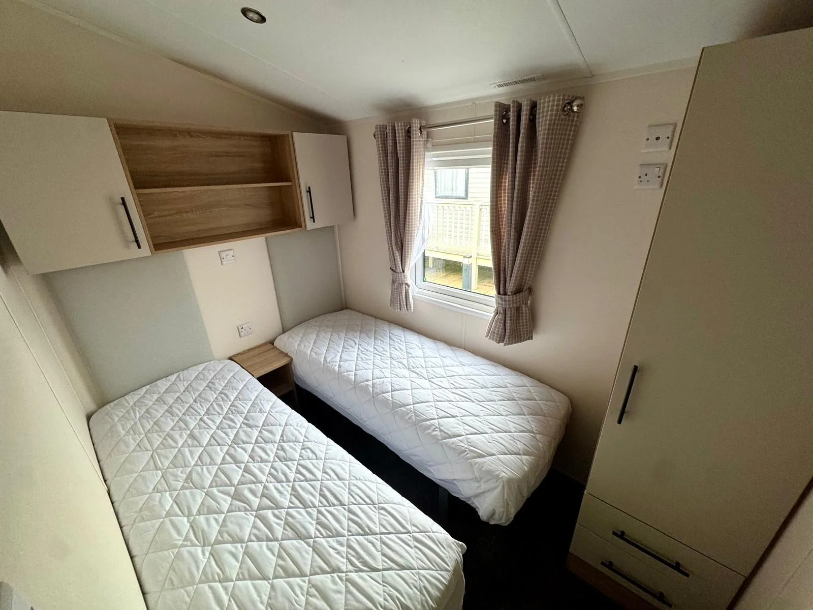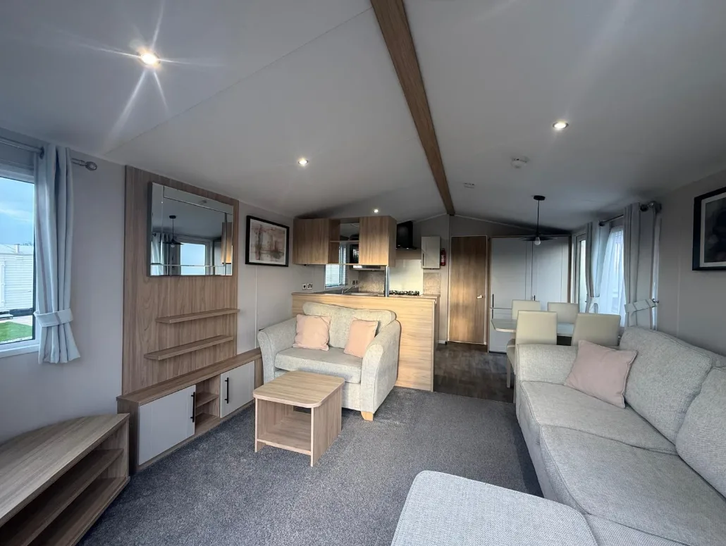 The Manor combines traditional charm with modern comfort, offering a spacious and inviting holiday home. Step into the lounge and sink into the generously sized, freestanding sofas — exceptionally comfortable to capture the best views of the park. One even folds out into a convenient double bed for those extra guests. The stylish shaker kitchen is both practical and efficient, with ample worktops, plenty of storage, and under-unit lighting to make cooking effortless. Enjoy meals at the freestanding dining table, perfectly positioned under a large window to fill your space with natural light. In the two-bedroom models, the main bedroom boasts a luxurious king-size bed with clever lift-up storage. You’ll also find a full-size wardrobe, integrated storage solutions, and a vanity unit with mirror — perfect for getting ready for a night out, complete with a convenient en-suite WC.