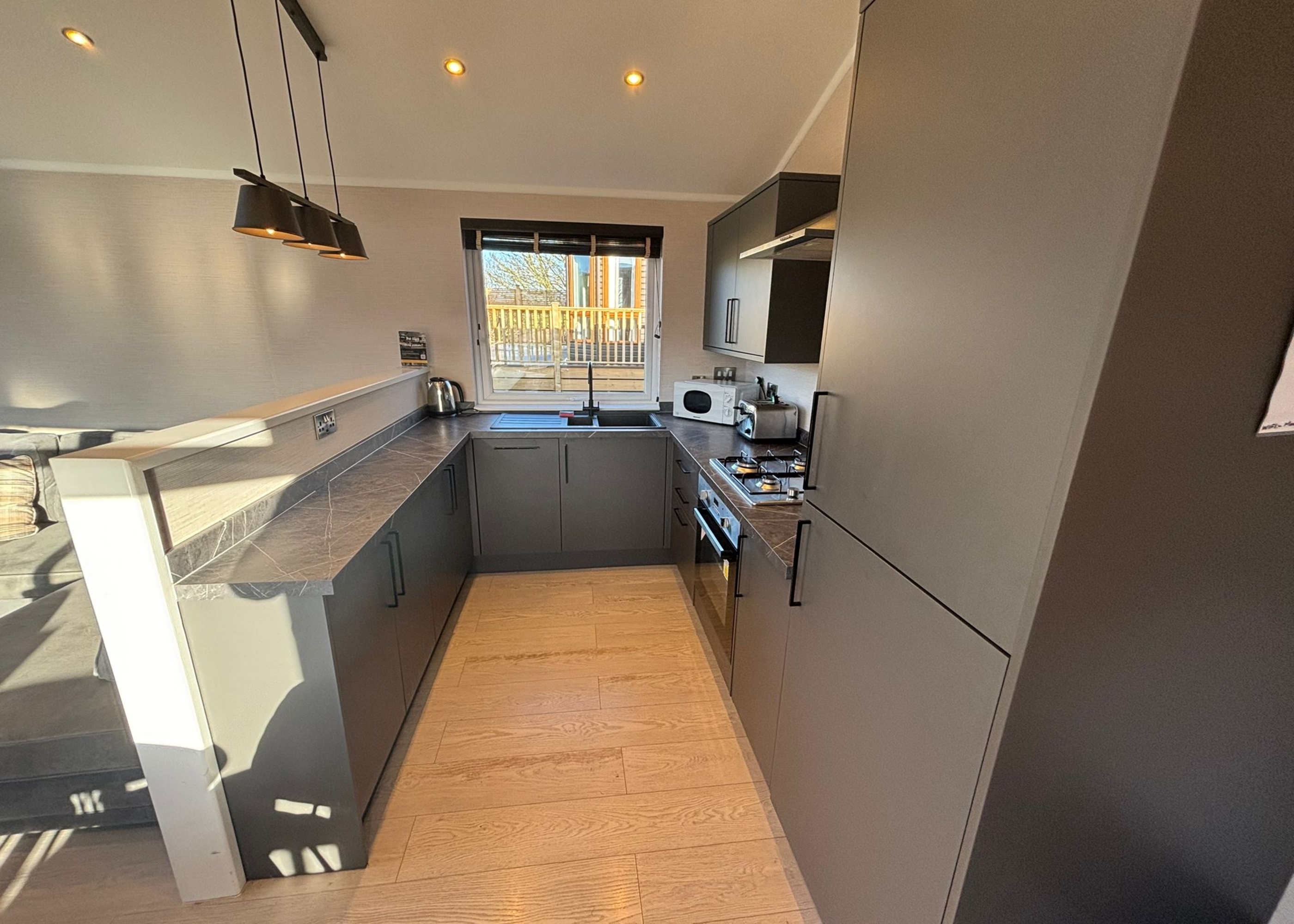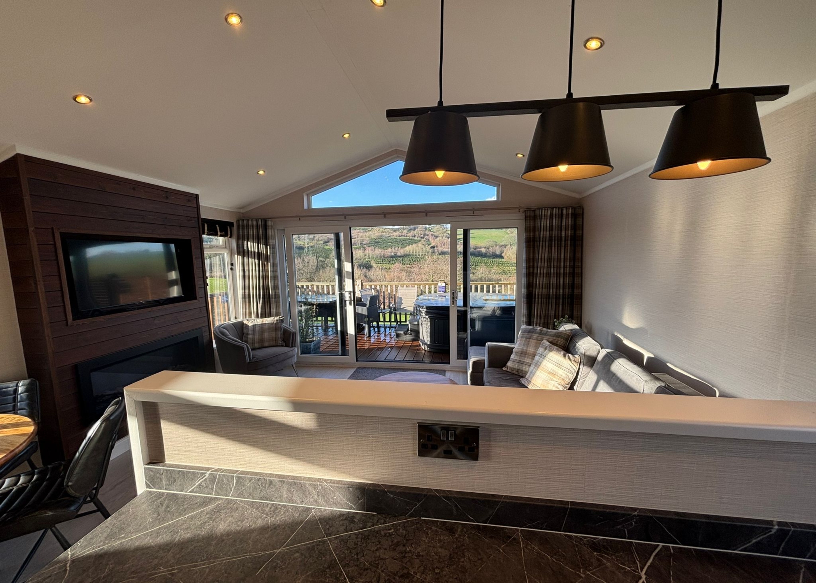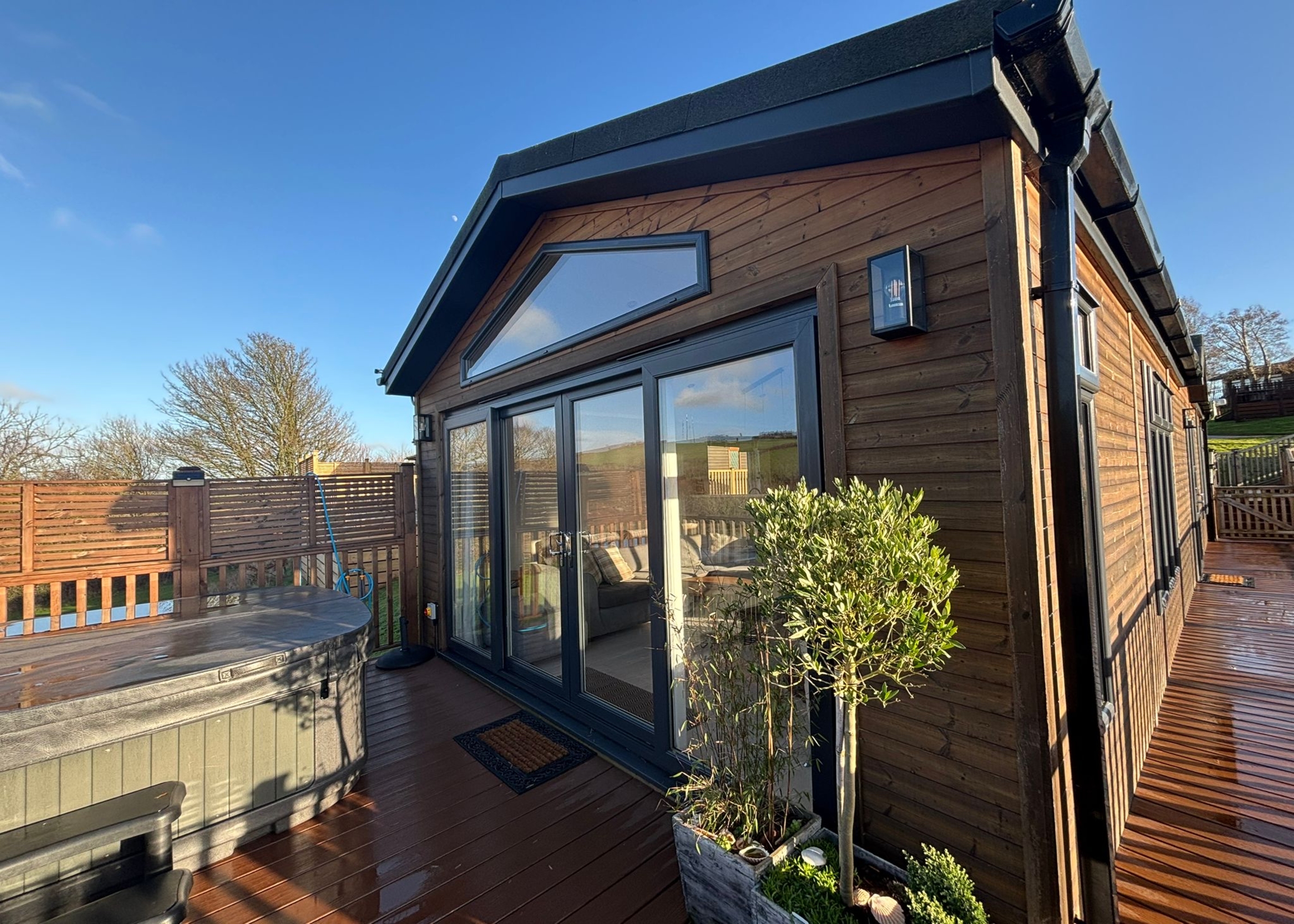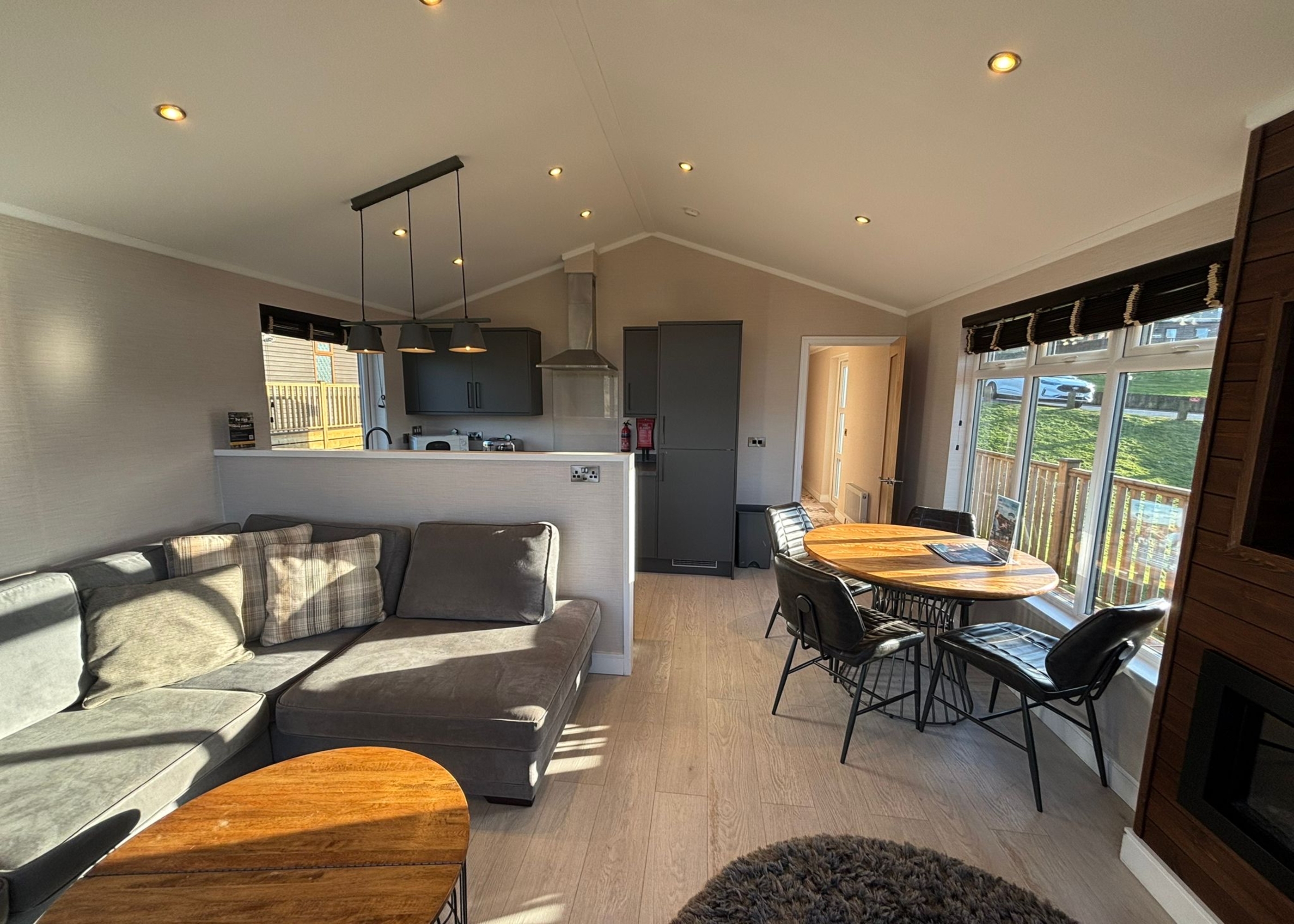 Retreat to elegant countryside comfort in this exceptional Prestige Quindi, perfectly positioned to enjoy sweeping meadow views and just a short walk from the dog exercise area. Relax in your own private hot tub after a day of adventure, or sit back on the decking and savour the tranquil rural setting. Inside, you’re welcomed by a bright and contemporary open-plan living and kitchen space, carefully styled to offer both practicality and relaxation. The sleek, fully equipped kitchen makes mealtimes a pleasure, while the cosy lounge area creates the ideal spot to unwind at the end of the day. The home features two tastefully furnished bedrooms, including a generous master with its own ensuite shower room, along with a second bedroom well suited to families or friends sharing. With its peaceful outlook, stylish design, and thoughtful luxury details throughout, this holiday home promises a truly relaxing and memorable escape.