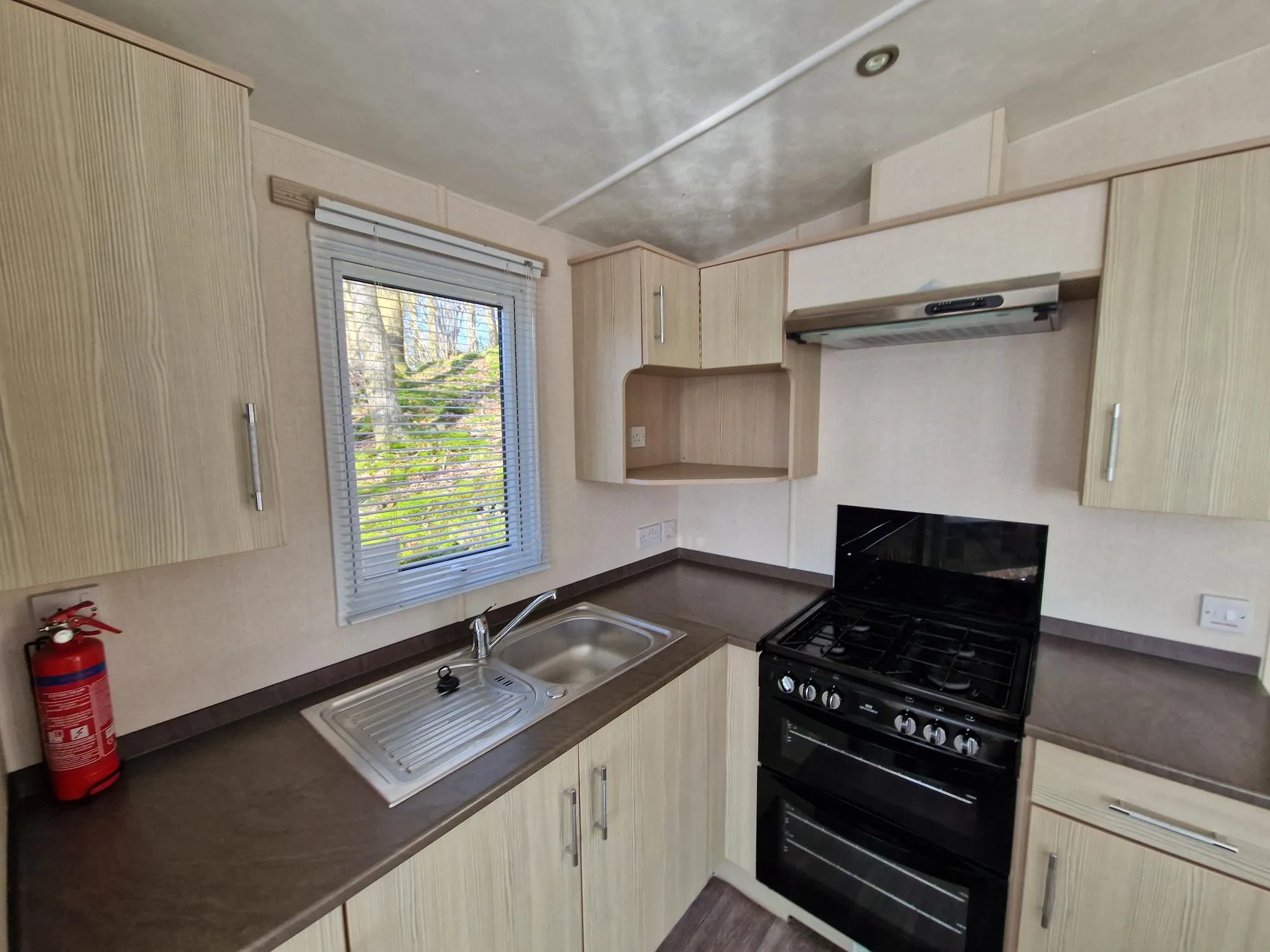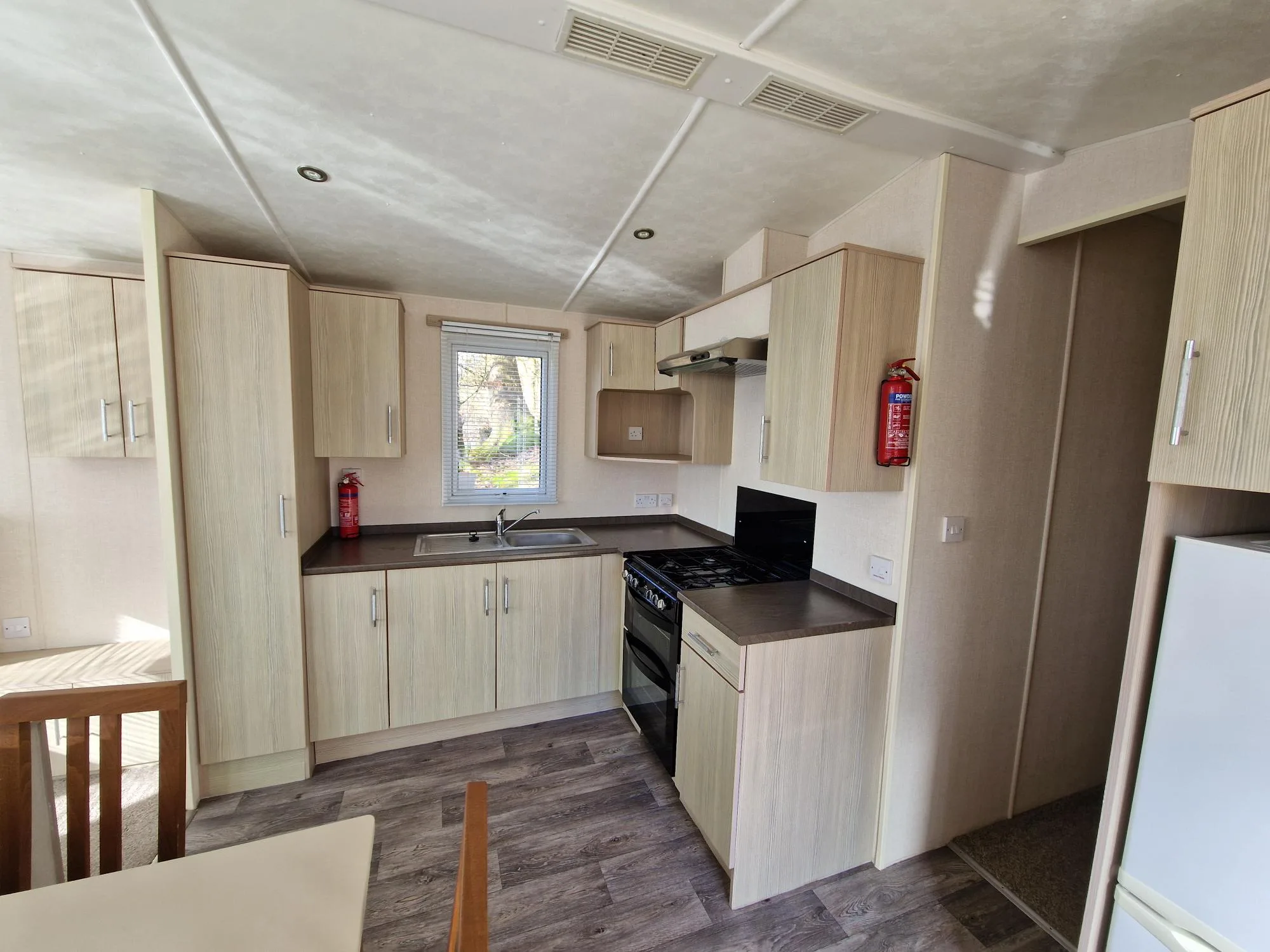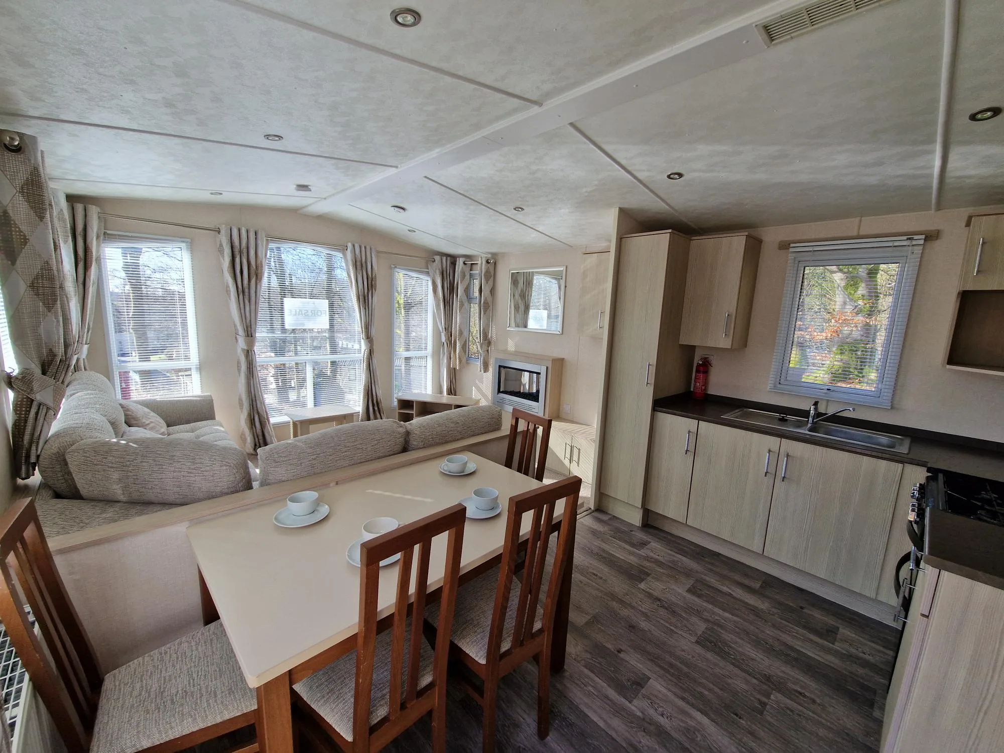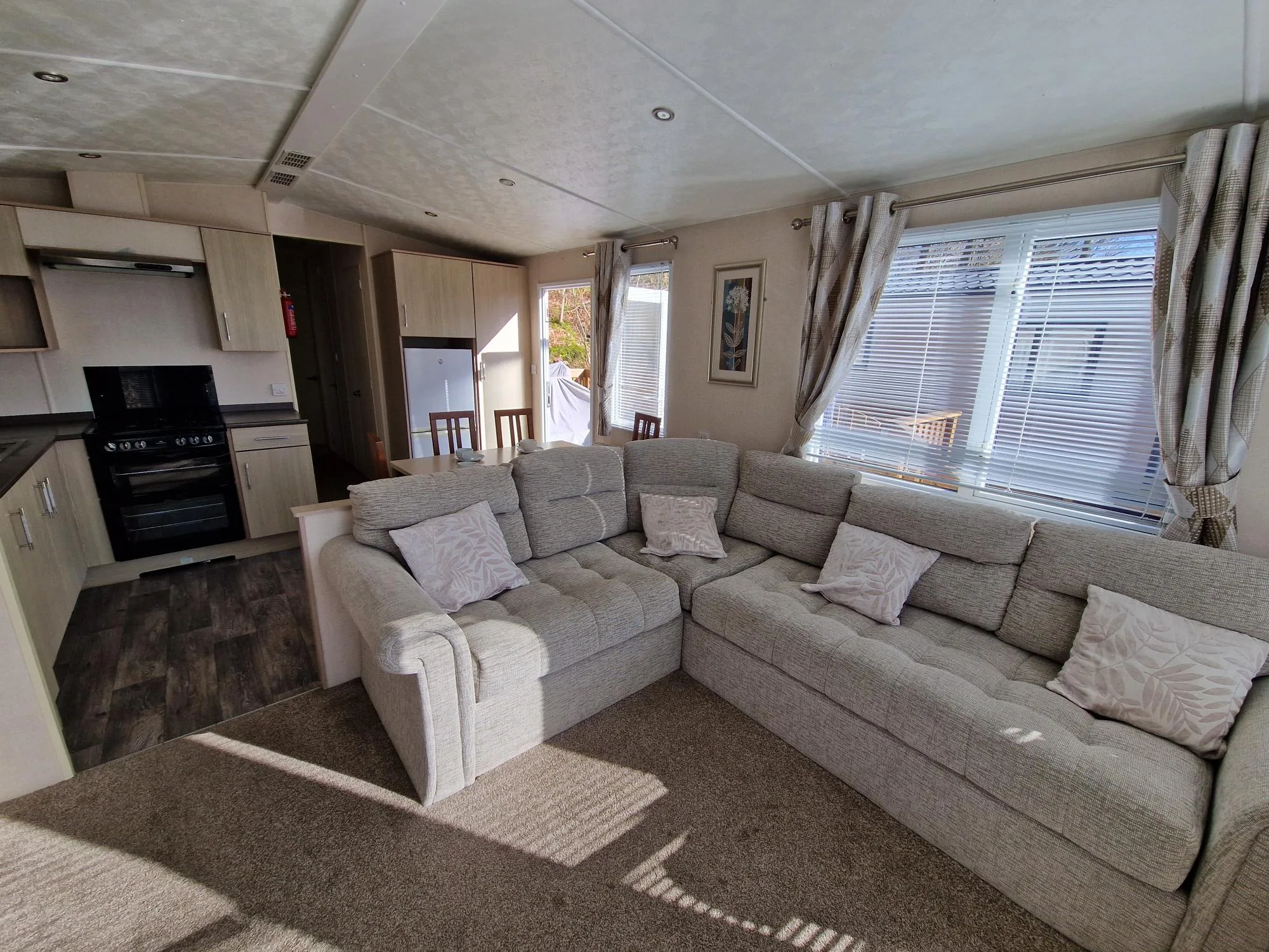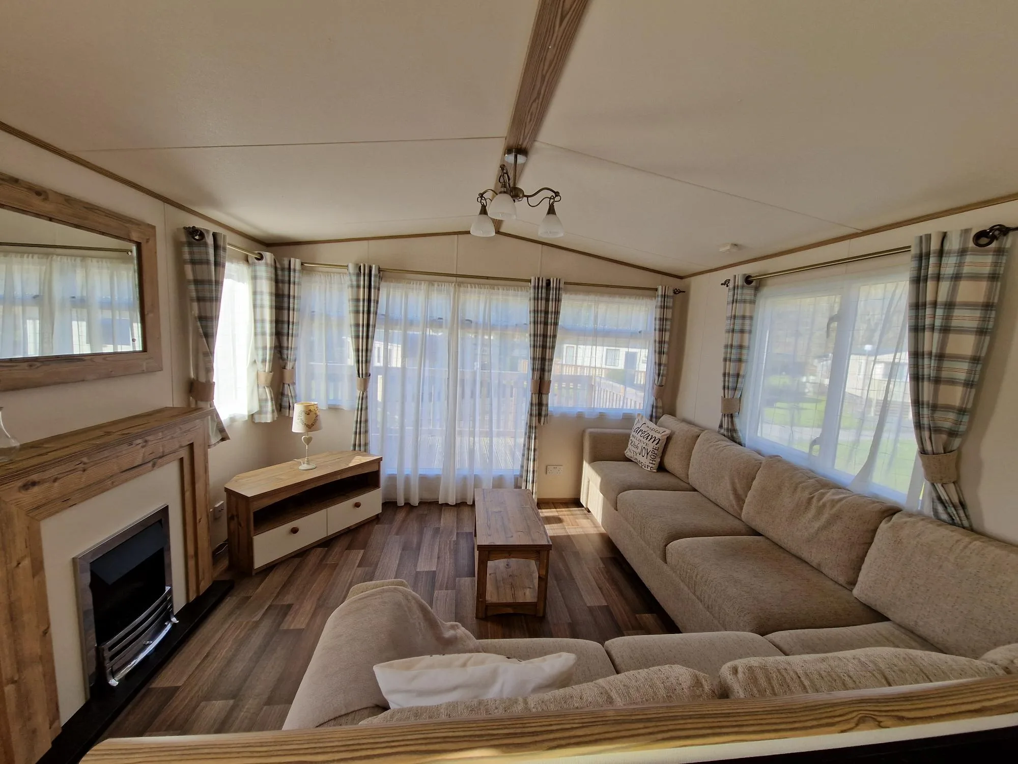 With three panelled windows at the front of the caravan, the main living area is flooded with sunlight, creating a bright and airy atmosphere throughout.