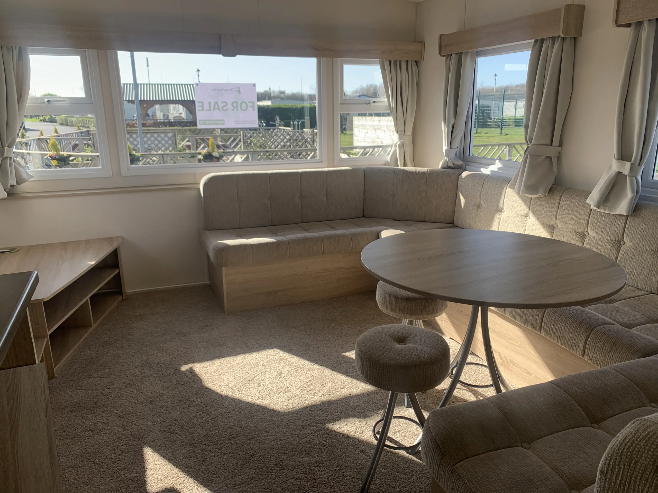 Designed with first-time buyers in mind, it offers excellent value for money, spacious open-plan living, and a cosy, home-from-home atmosphere. The layout features two comfortable bedrooms, plus a pull-out bed in the wraparound sofa for extra guests. The fully fitted kitchen and adjacent dinette area make meal times easy, while the family bathroom includes a large shower unit, wash basin, and WC. With its bright, modern fabrics and thoughtful design, the Delta Santana provides all the space and features needed for a perfect family getaway. Practical, stylish, and packed with everything you need, this holiday home is ready for you to make it your own.