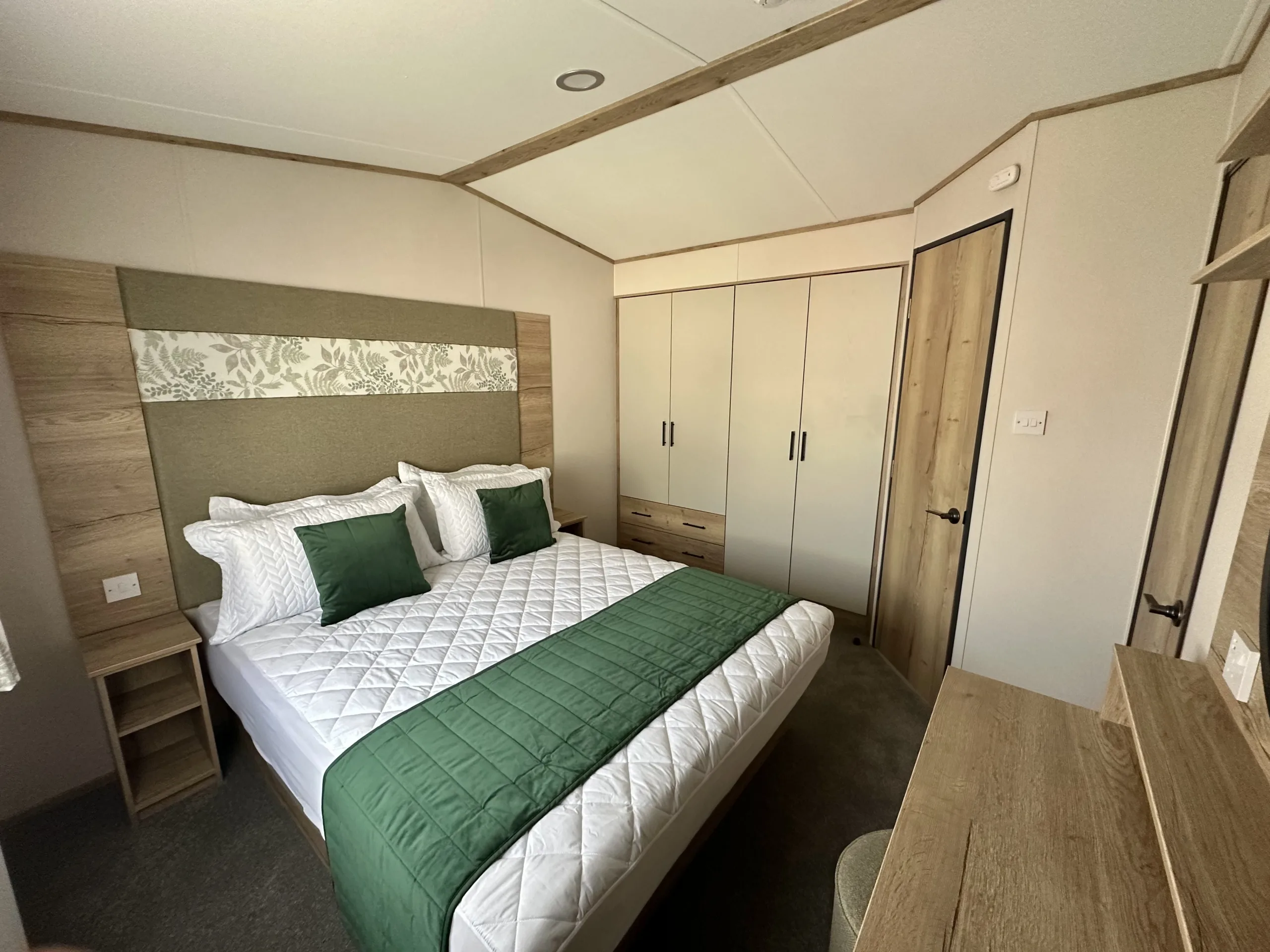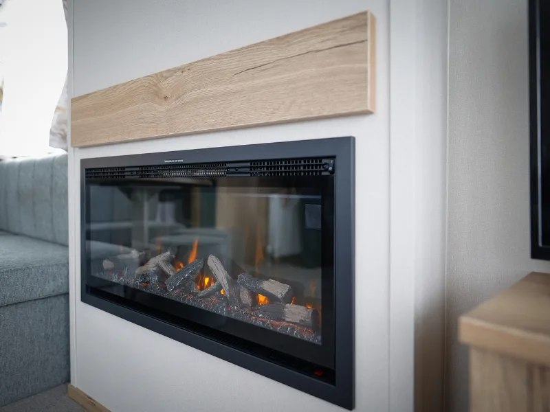 New for 2025, the Oak showcases a beautiful, contemporary colour palette of rich terracotta and calming sage tones, giving it a fresh, modern edge while still feeling cosy and inviting. The generous living area is perfect for unwinding or entertaining, complete with a sleek electric fireplace and a plush L-shaped sofa just made for relaxing evenings with family and friends. With soft carpet underlay throughout, every step feels luxurious and homely.