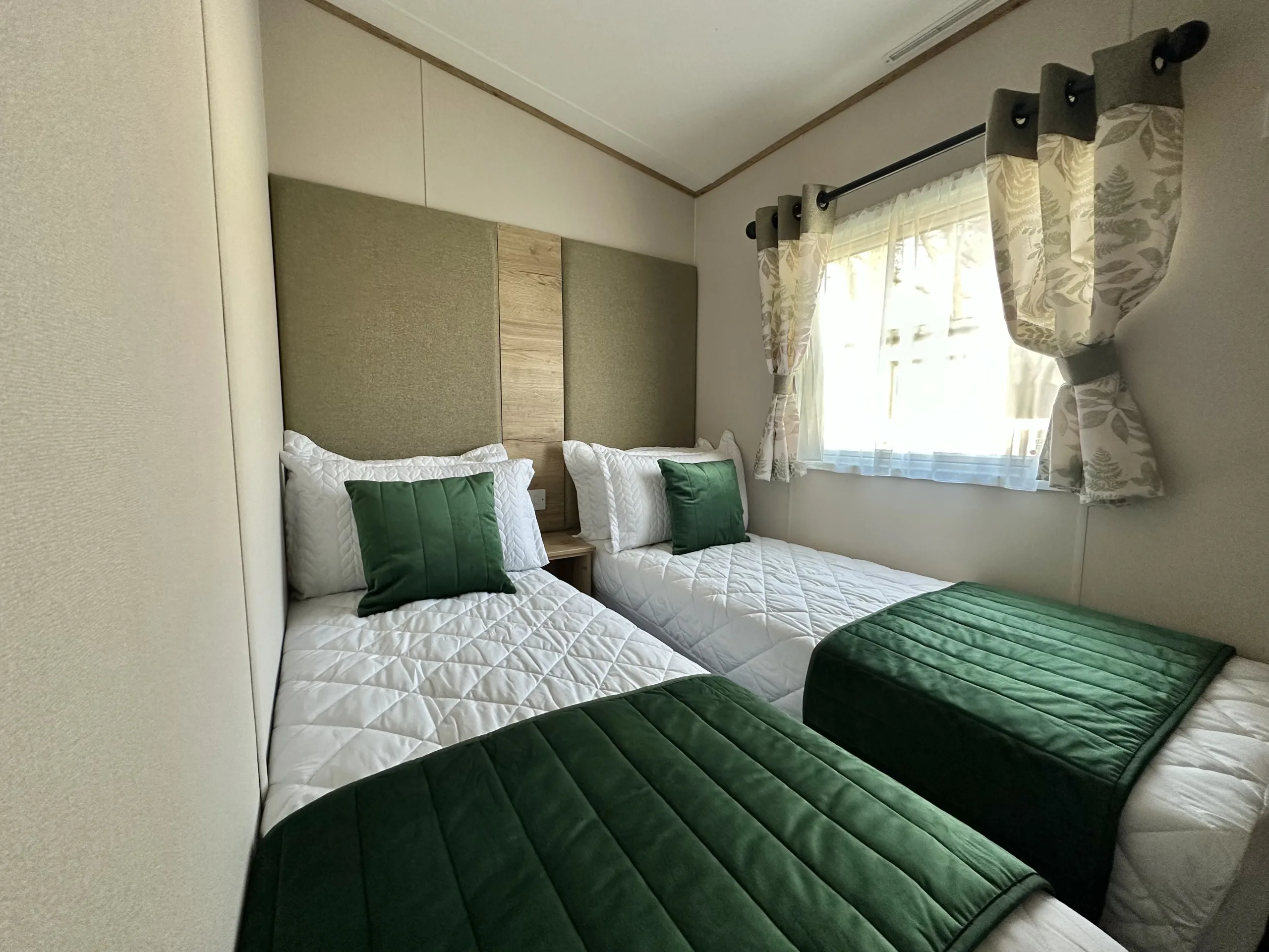 The thoughtfully designed space continues into a fixed dining area and a striking U-shaped kitchen, featuring soft-close cabinetry and a powerful externally vented cooker hood – ideal for everything from quick breakfasts to family feasts. You’ll also find modern touches throughout, including handy USB sockets in the kitchen and TV points in both the double and twin bedrooms. Stylish fabric headboards add a touch of elegance while providing comfort you’ll appreciate at the end of the day.