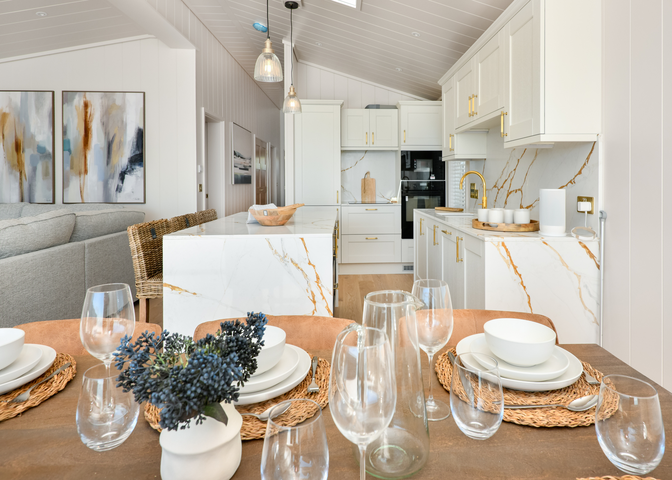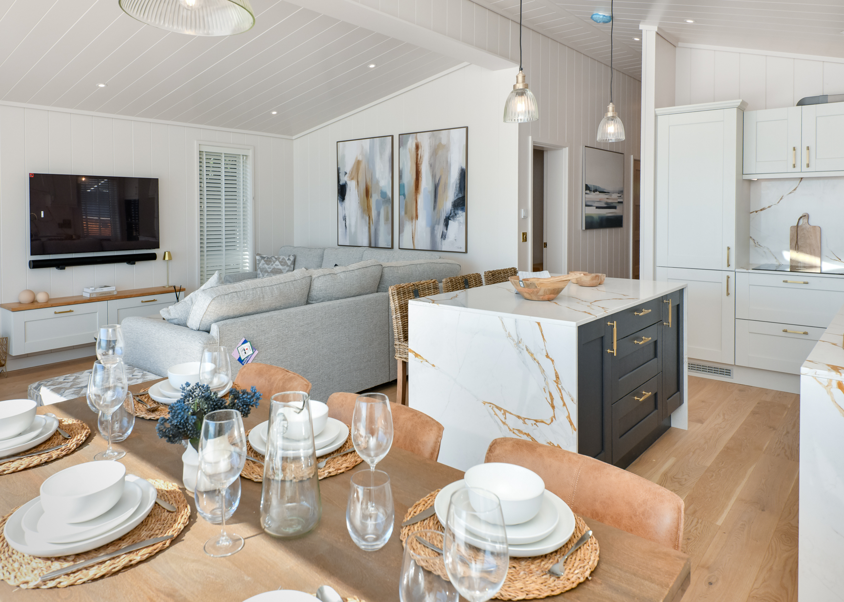 Tucked just a short distance from the shoreline, the Retreat Coastal offers a unique chance to own a sought after seafront plot, complete with private steps that lead directly down to the beach. Bringing together the beauty of the coast and the calm of the countryside, this remarkable lodge creates an ideal setting for both peaceful escapes and outdoor adventures, with picturesque walks all around. The exterior is equally impressive, boasting a generous porcelain patio framed by a stylish glass surround, wonderful for taking in uninterrupted coastal views. The lodge is finished with elegant cedar wood cladding, giving it a modern yet natural appearance that complements its surroundings. Inside, the open plan living area has been carefully designed with contemporary living in mind. The fully fitted kitchen includes high quality integrated appliances, while the spacious dining area is ideal for entertaining guests. The comfortable lounge provides plenty of space to relax, with double bi-fold doors that open out to stunning sea views, effortlessly connecting the indoors with the outside space. Offering three well presented bedrooms, the lodge features a luxurious master suite with a king size bed and its own private ensuite. In total, there are three bathrooms, ensuring both comfort and convenience for family and visitors alike. Set against a backdrop of beautiful sea views, the Retreat Coastal provides a sense of privacy while still allowing access to the resort’s excellent amenities, including its well known spa facilities.