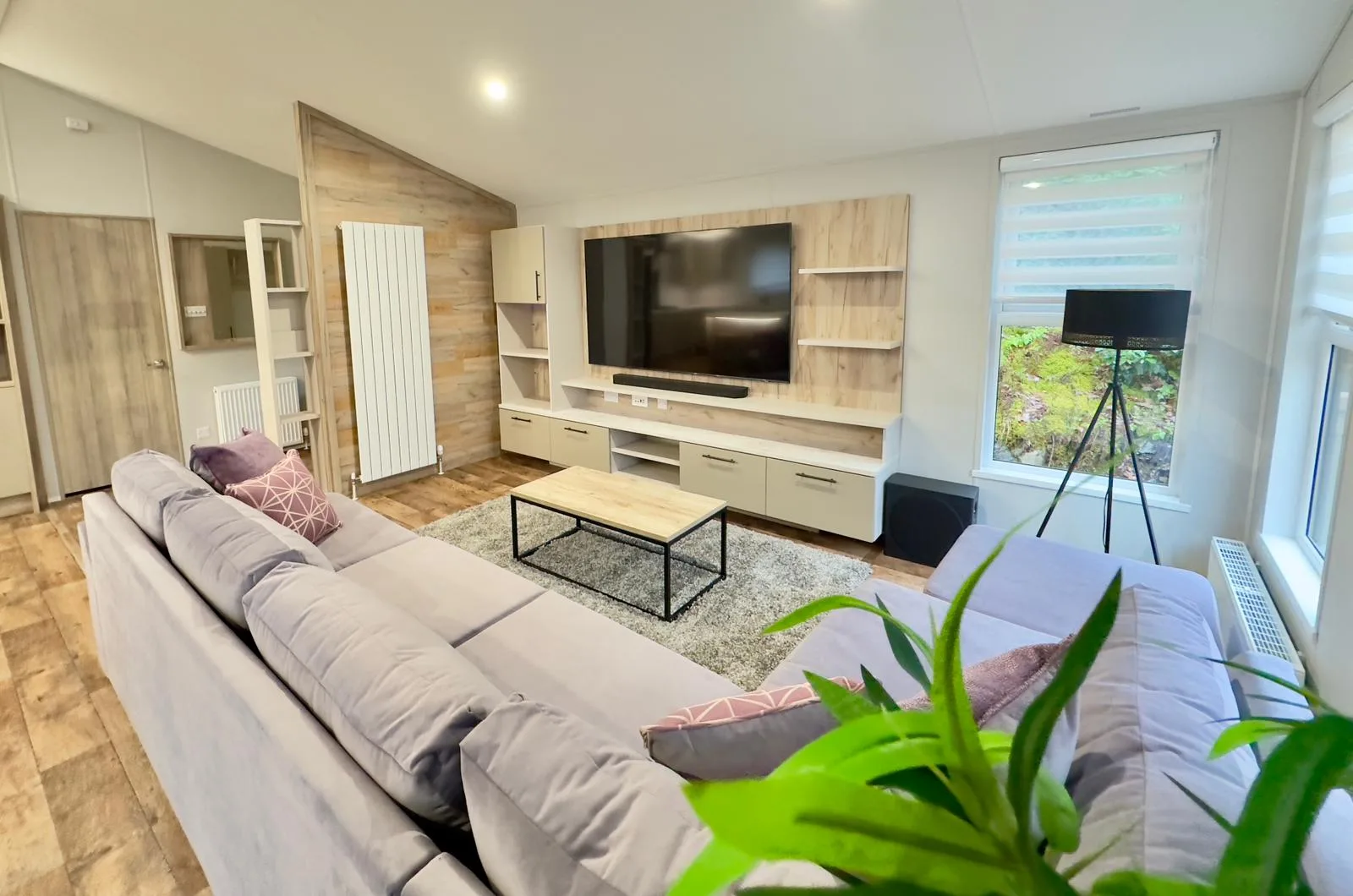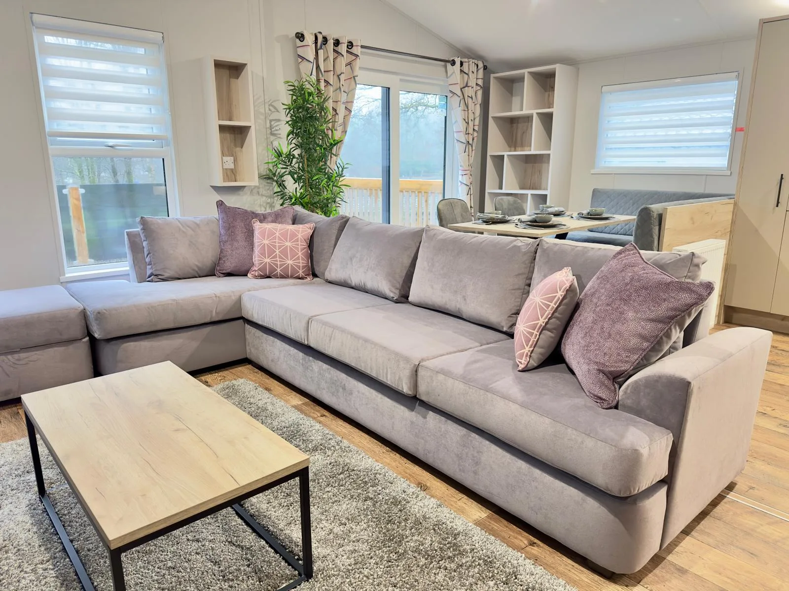 Contemporary, spacious and packed full of the latest mod cons, the Mapleton lodge was designed for those who love a bit of tech in their homes. The Mapleton lodge in the Lake District is a sleek and stylish retreat in which you can make memories that will last a lifetime. Its soft grey colour scheme is complimented by fresh lavender accents making the lodge a calming space to holiday. Relax in the open plan lounge with its media wall and atmospheric mood lighting, ideal for enjoying the latest blockbuster.