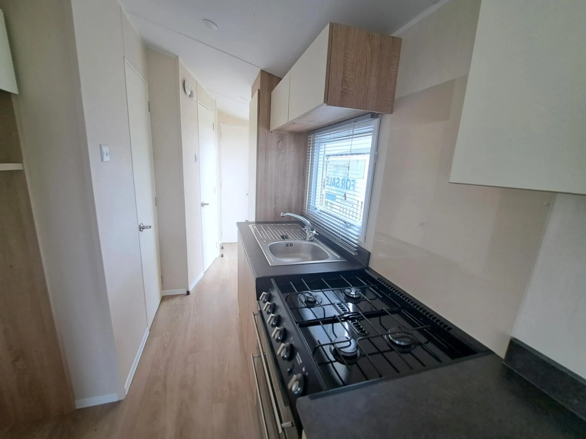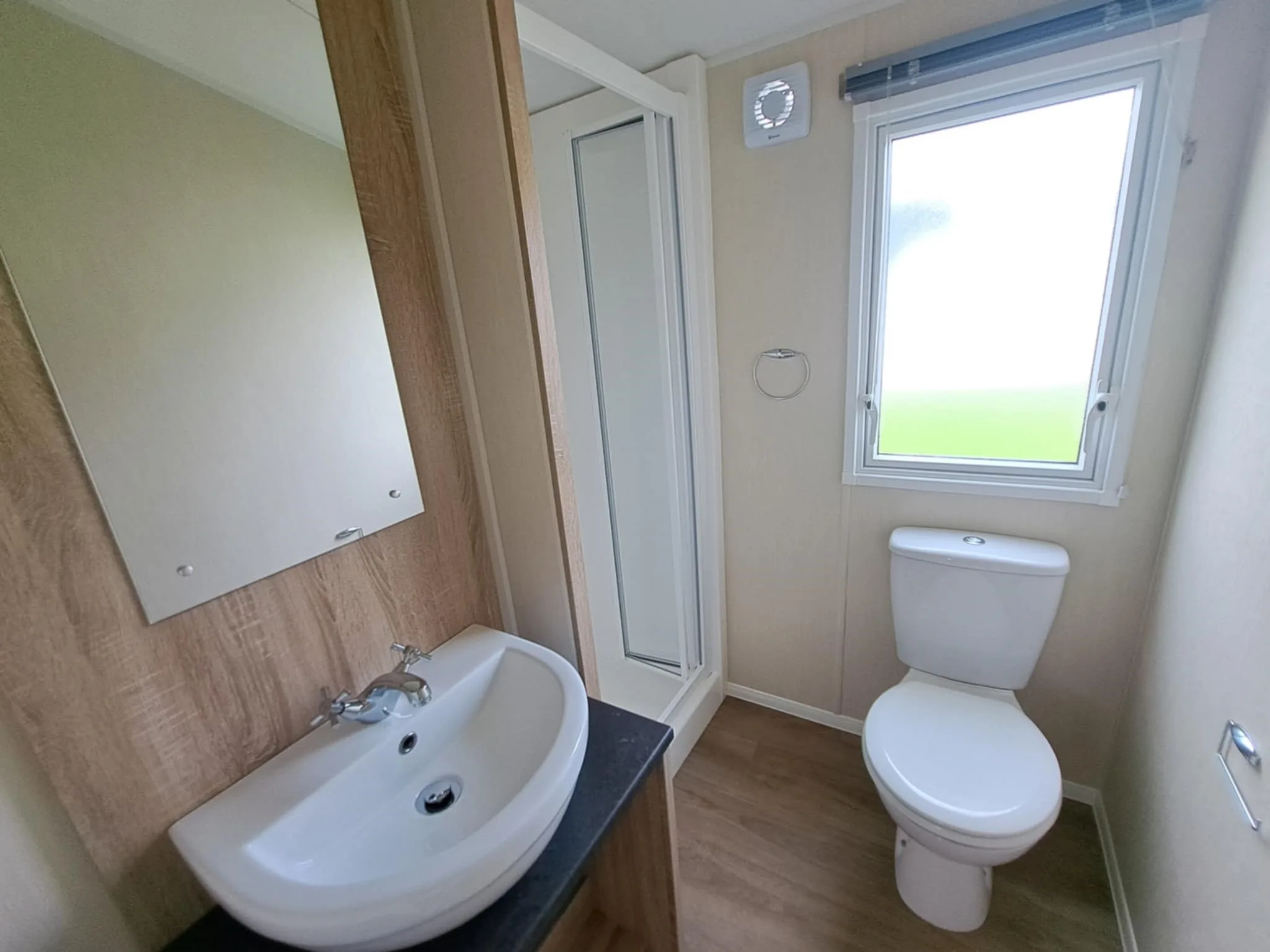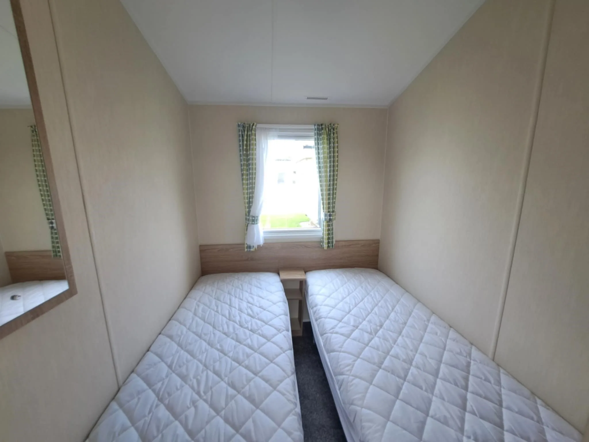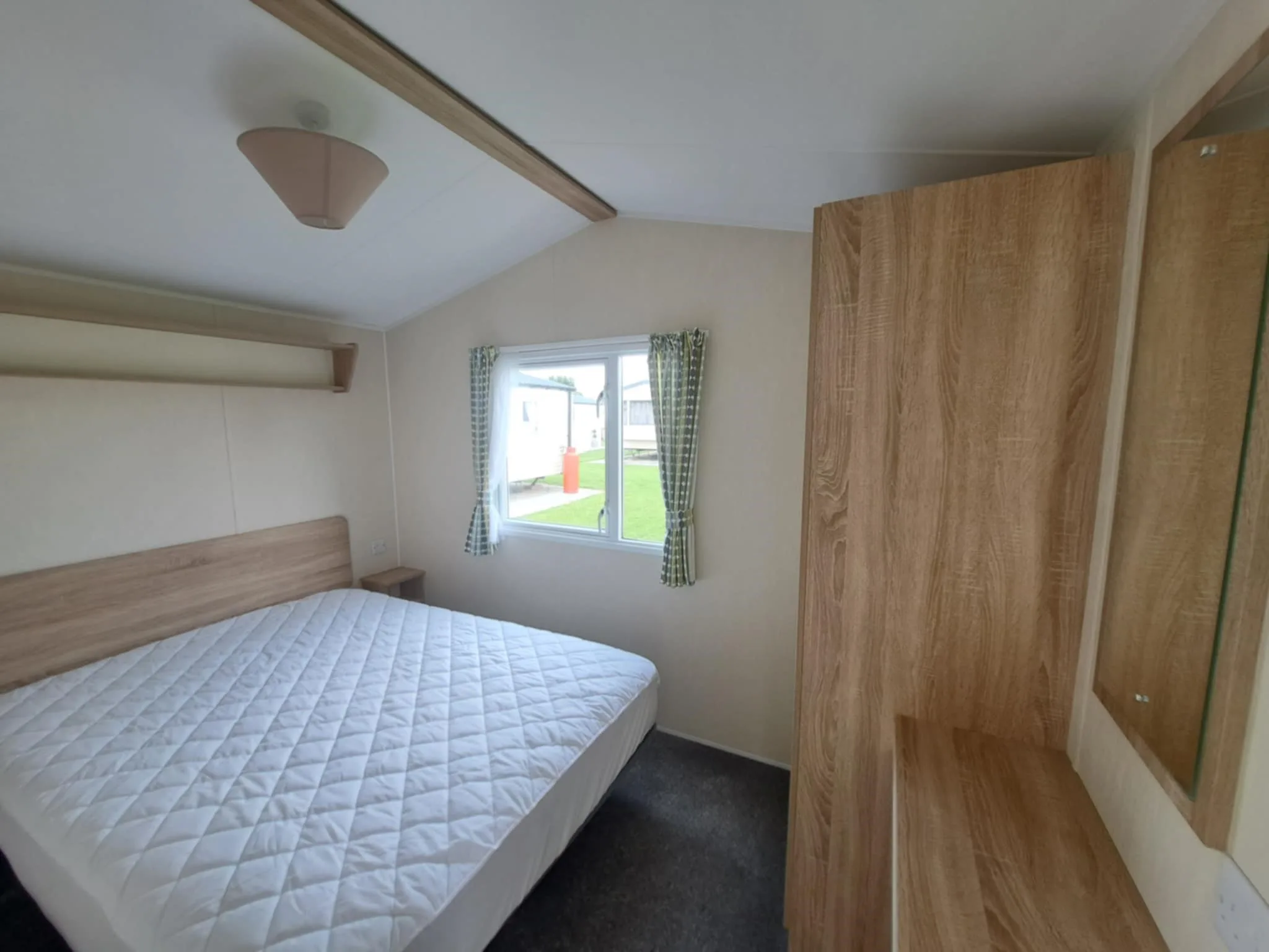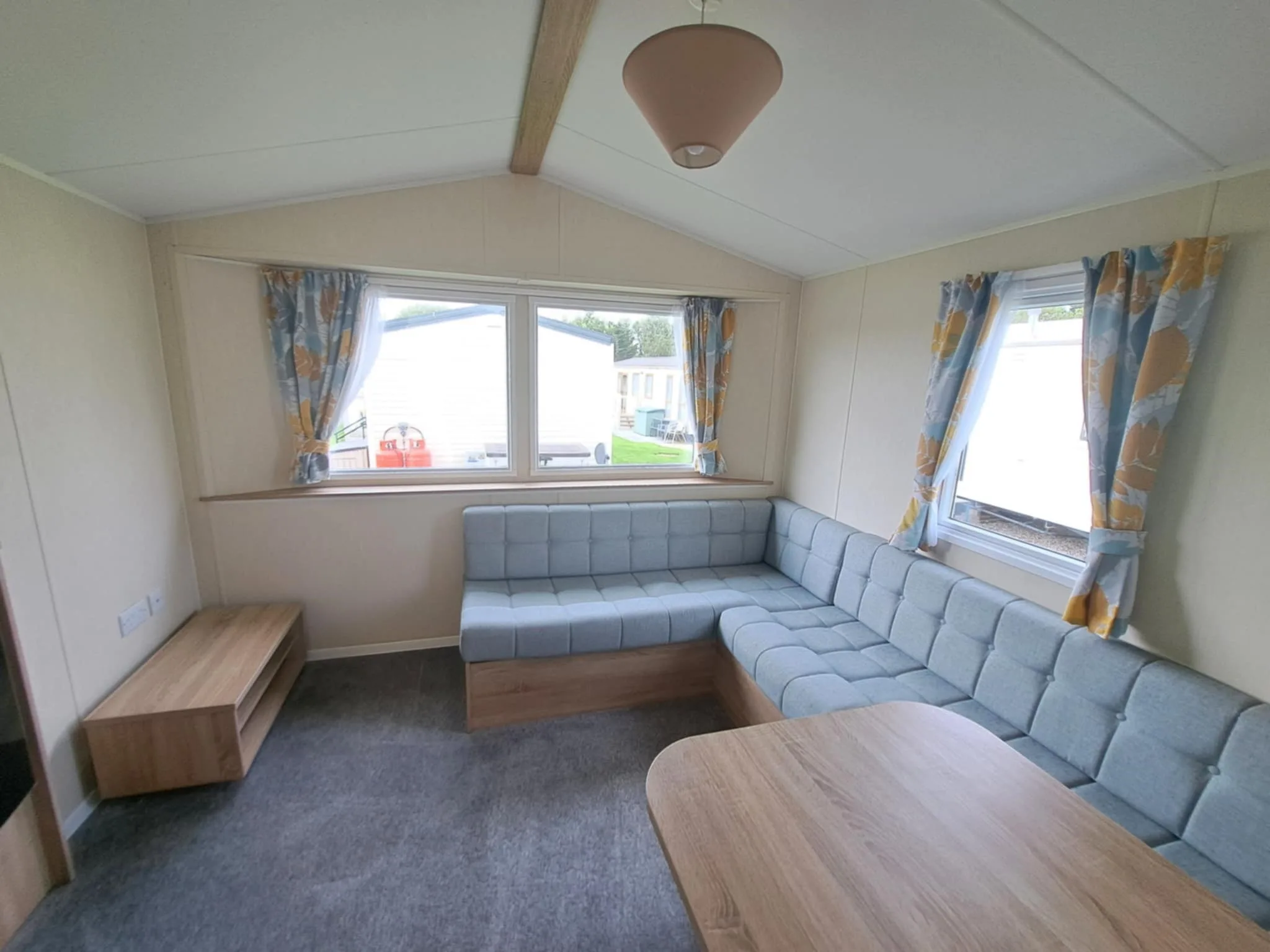 Accommodation briefly comprising: Side decking, L shaped sofa, modern electric fire, TV unit and dining area with free-standing table plus stools. Fully fitted kitchen with gas cooker and plenty of storage. One double bedroom and one twin bedroom. Large family shower room with WC. Finance available subject to status.