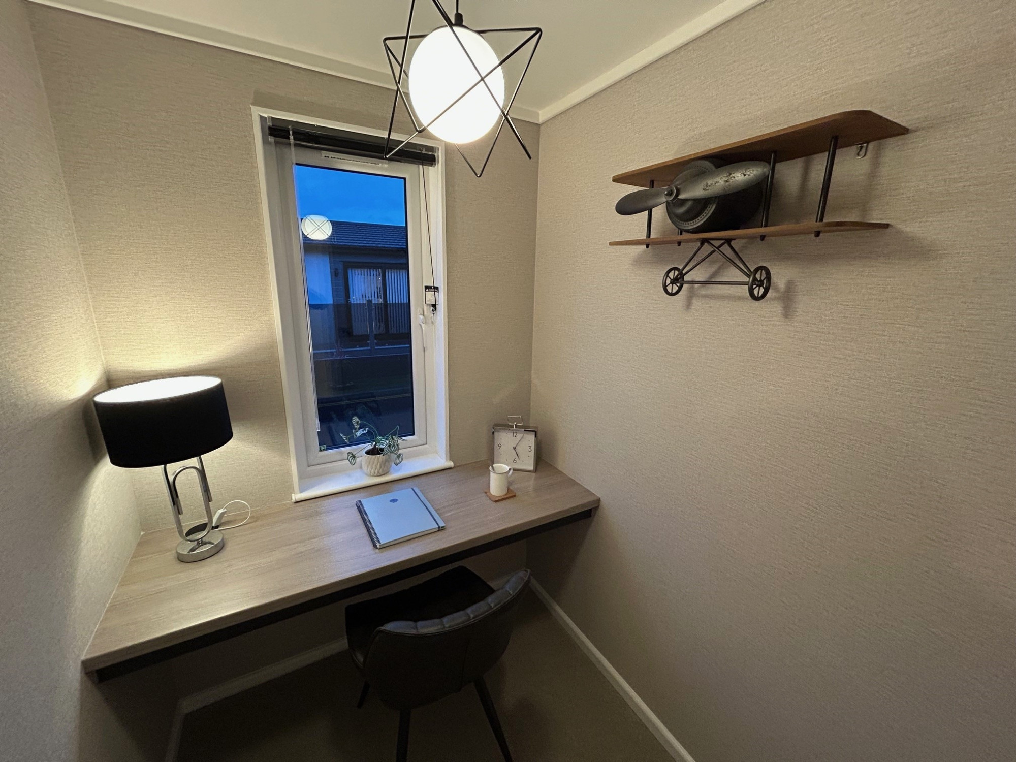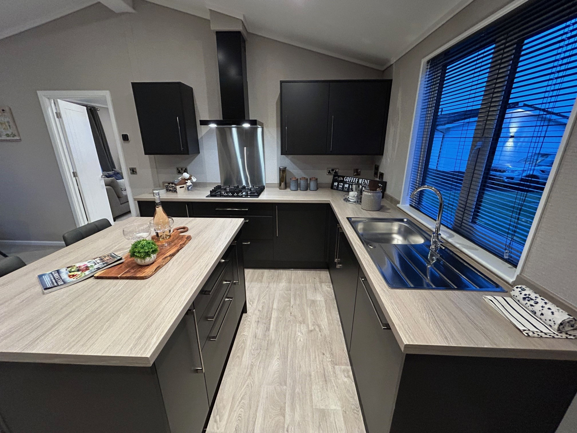 This brand new, modern-furnished Prestige Residence park home (50\'x20\') is perfect for those looking for a detached, easy to maintain, bungalow-style retirement property. The home features comfortable living and kitchen areas with large windows, and a comfortable living room with modern furniture. There is a study, two double bedrooms, the master has an en suite and walk in wardrobe and a bathroom.