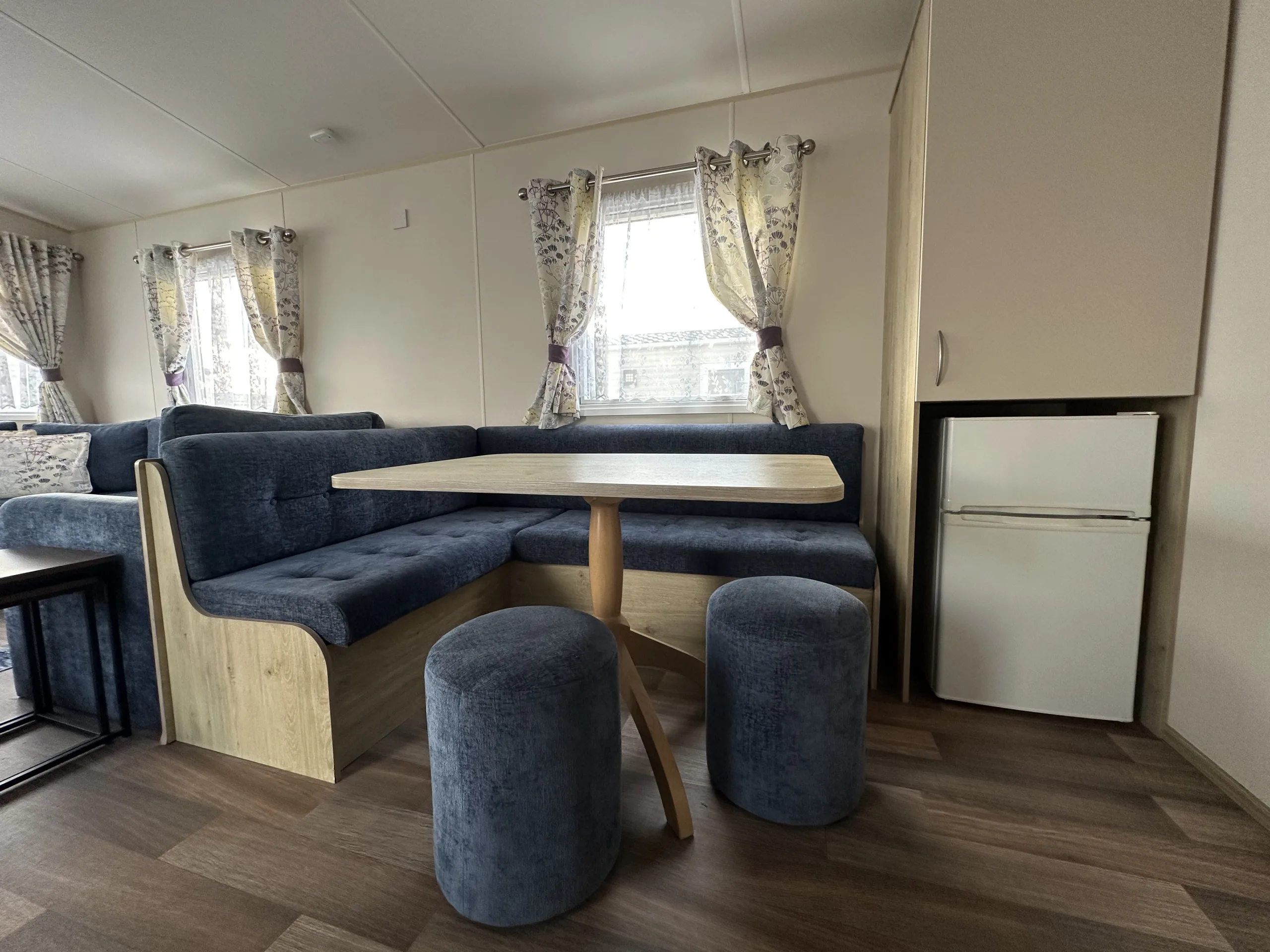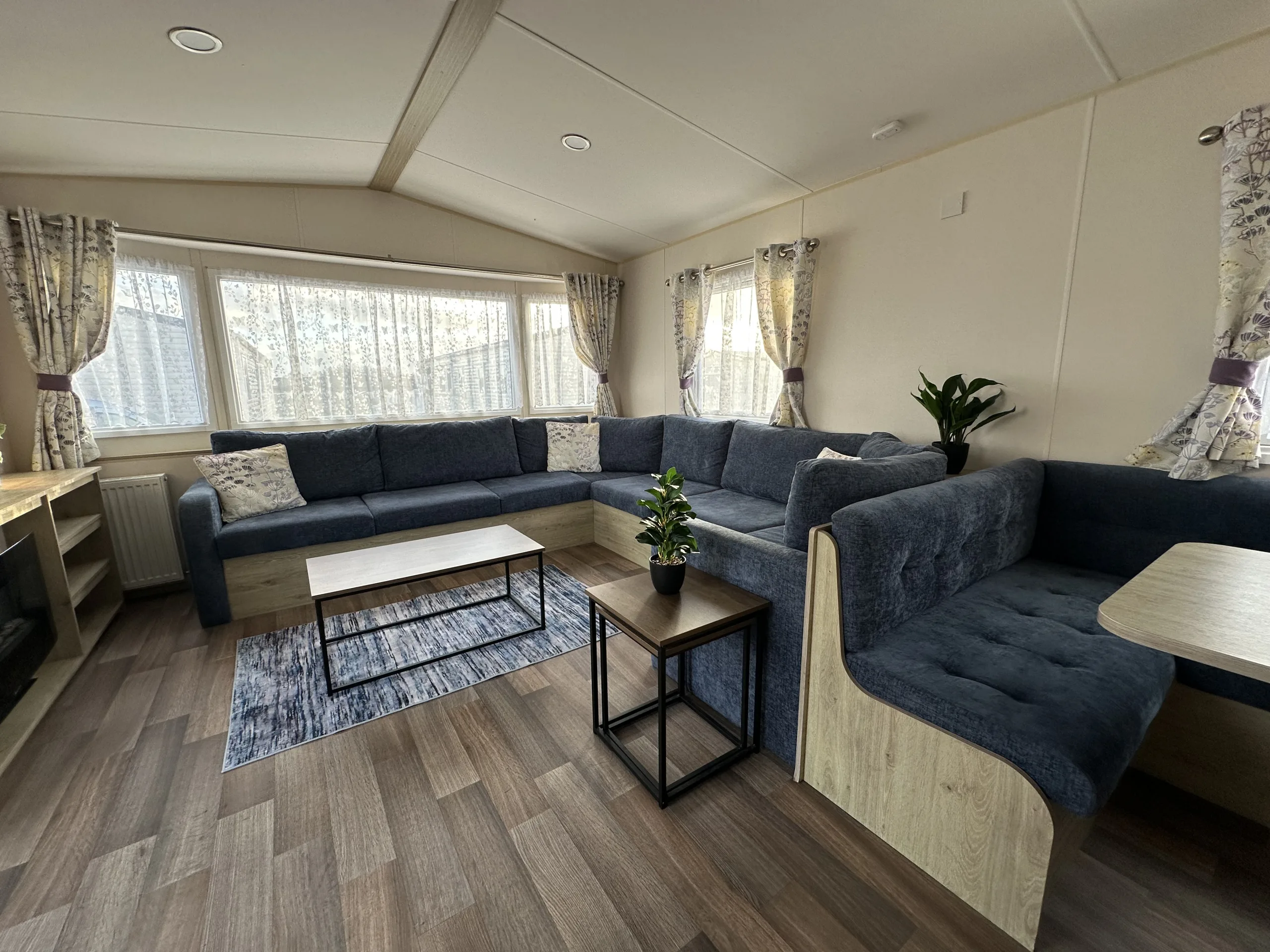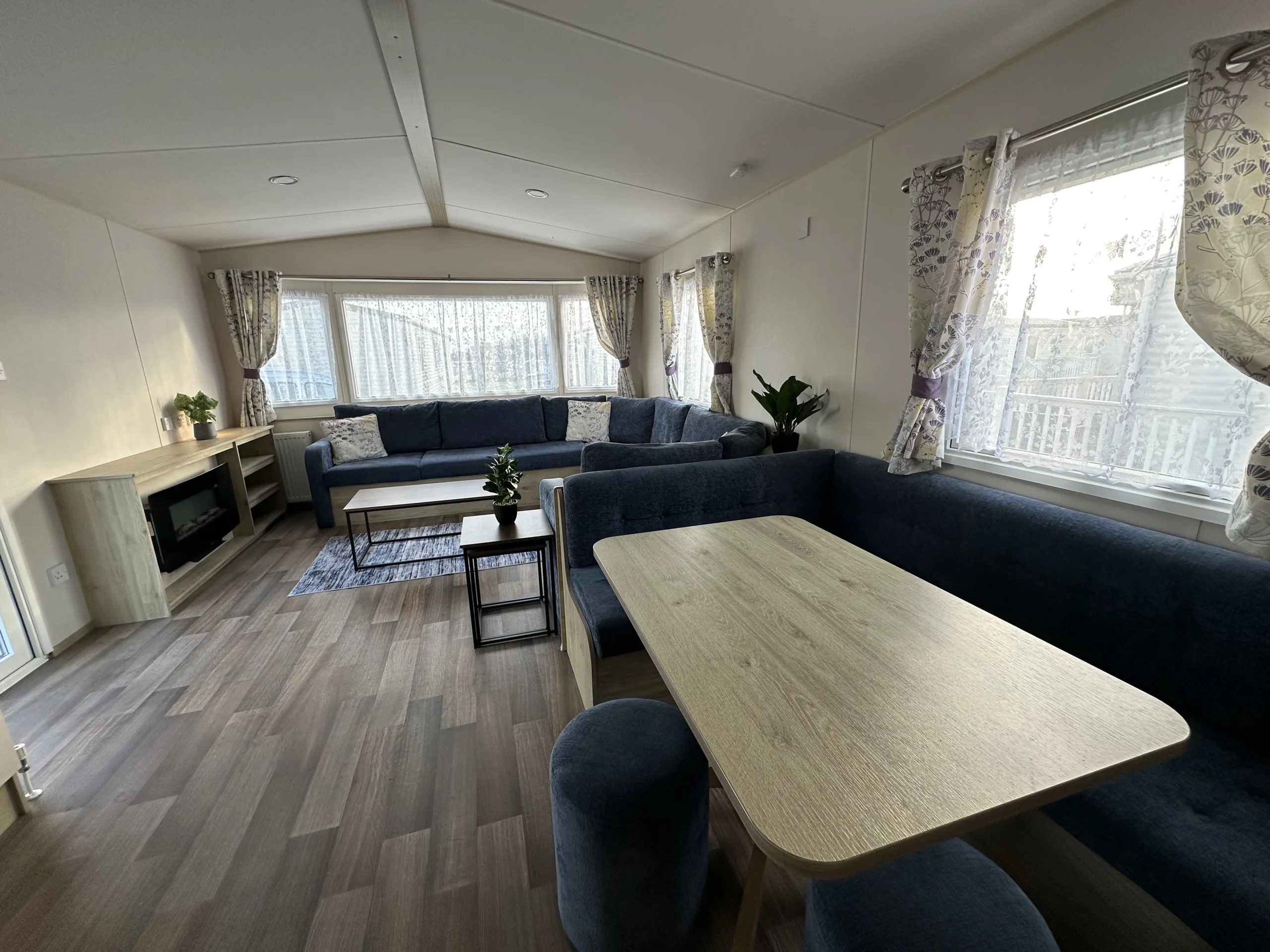 Open plan living including wraparound fixed seating plus laminate flooring to the lounge and dining areas giving a spacious and sociable feel for all the family. One Master double bedroom and two twin bedrooms all of a good size with storage. Family bathroom plus extra WC down the hall. Finance available subject to status.
